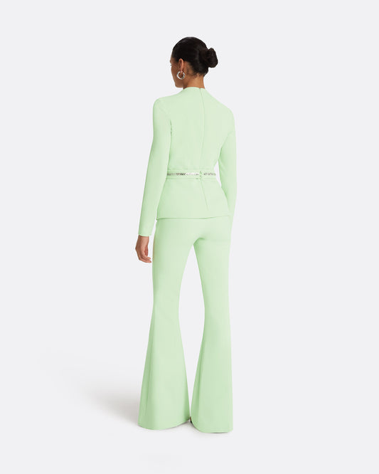 Bianca Chartreuse Long Dress With Embroidered Belt