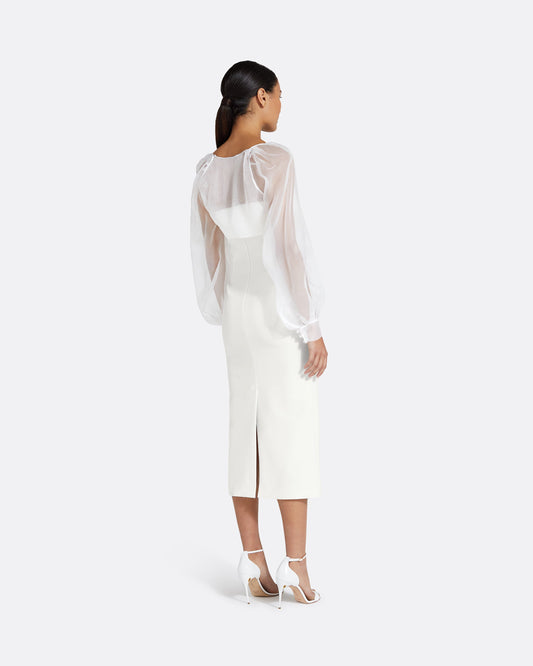 A collection of elegant dresses from mini to long, featuring intricate embroidery, flowing capes, and refined silhouettes. Crafted from heavy crepe and other considered fabrics, each piece is designed with attention to detail for a distinctive presence.