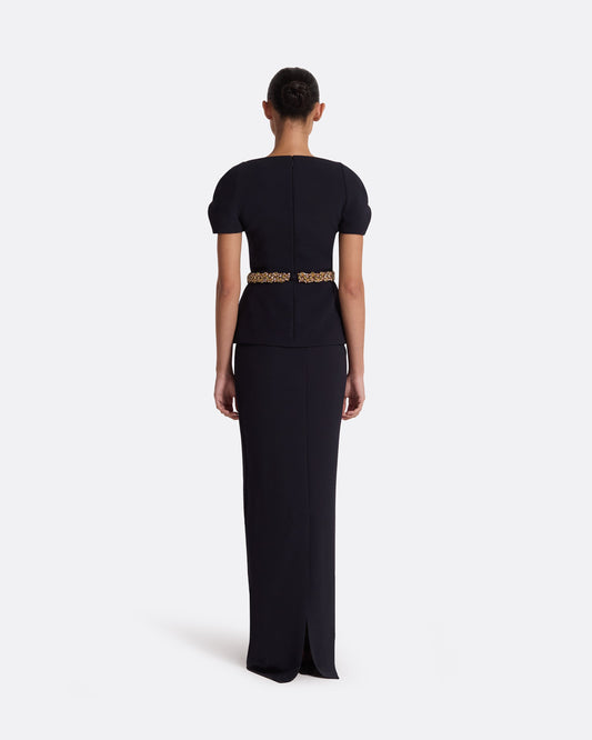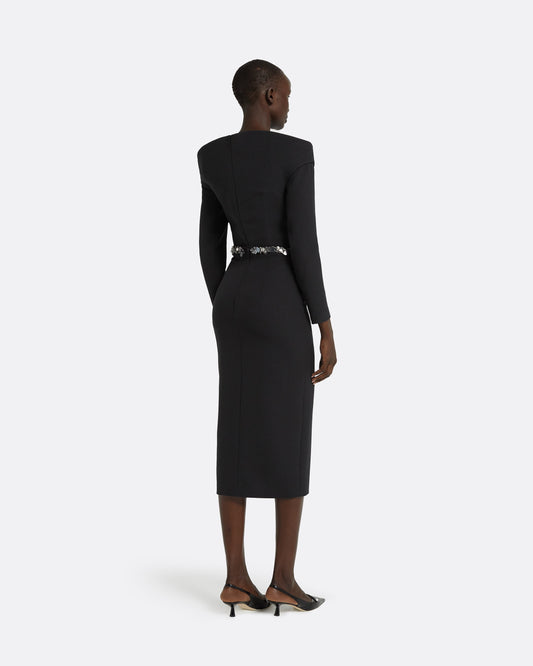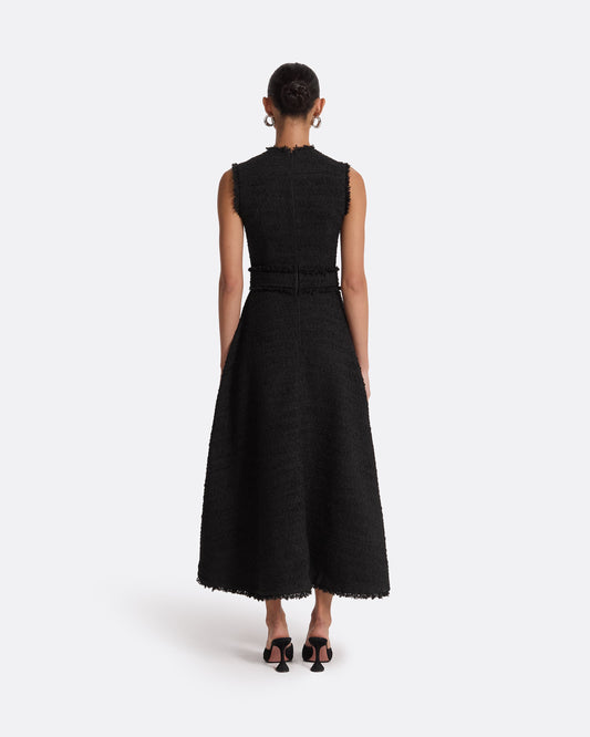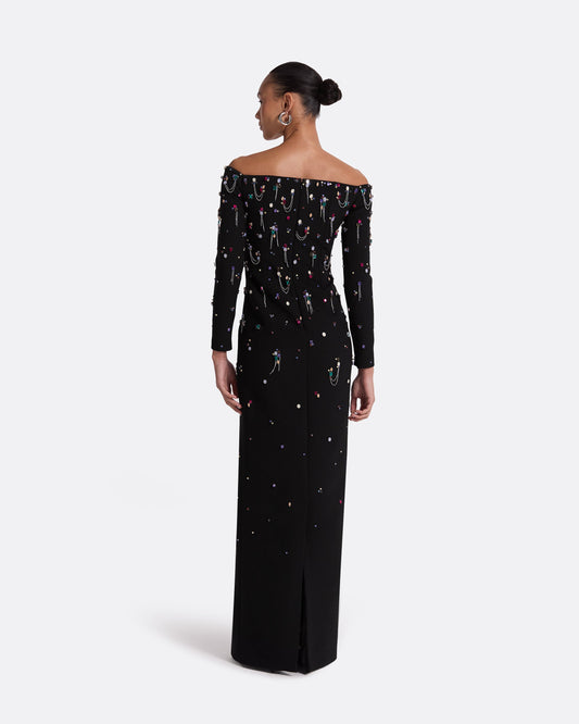 A collection of elegant dresses from mini to long, featuring intricate embroidery, flowing capes, and refined silhouettes. Crafted from heavy crepe and other considered fabrics, each piece is designed with attention to detail for a distinctive presence.
