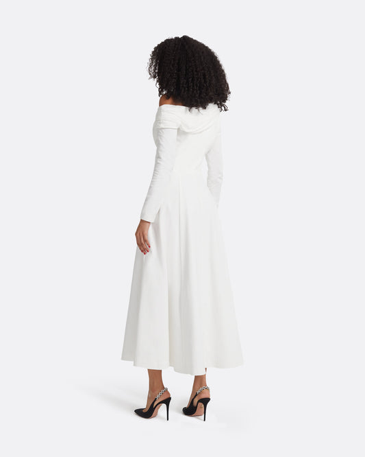 A collection of elegant dresses from mini to long, featuring intricate embroidery, flowing capes, and refined silhouettes. Crafted from heavy crepe and other considered fabrics, each piece is designed with attention to detail for a distinctive presence.
