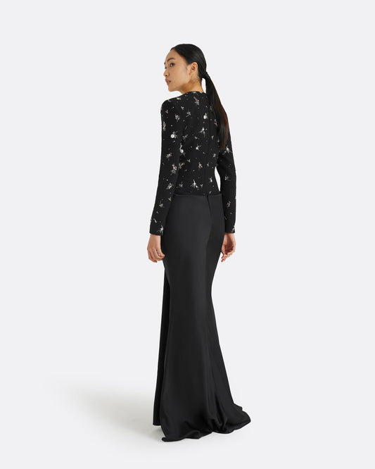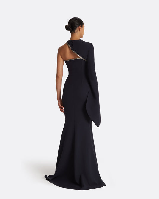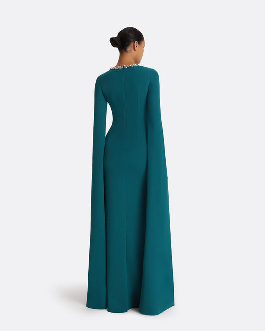 A collection of elegant dresses from mini to long, featuring intricate embroidery, flowing capes, and refined silhouettes. Crafted from heavy crepe and other considered fabrics, each piece is designed with attention to detail for a distinctive presence.