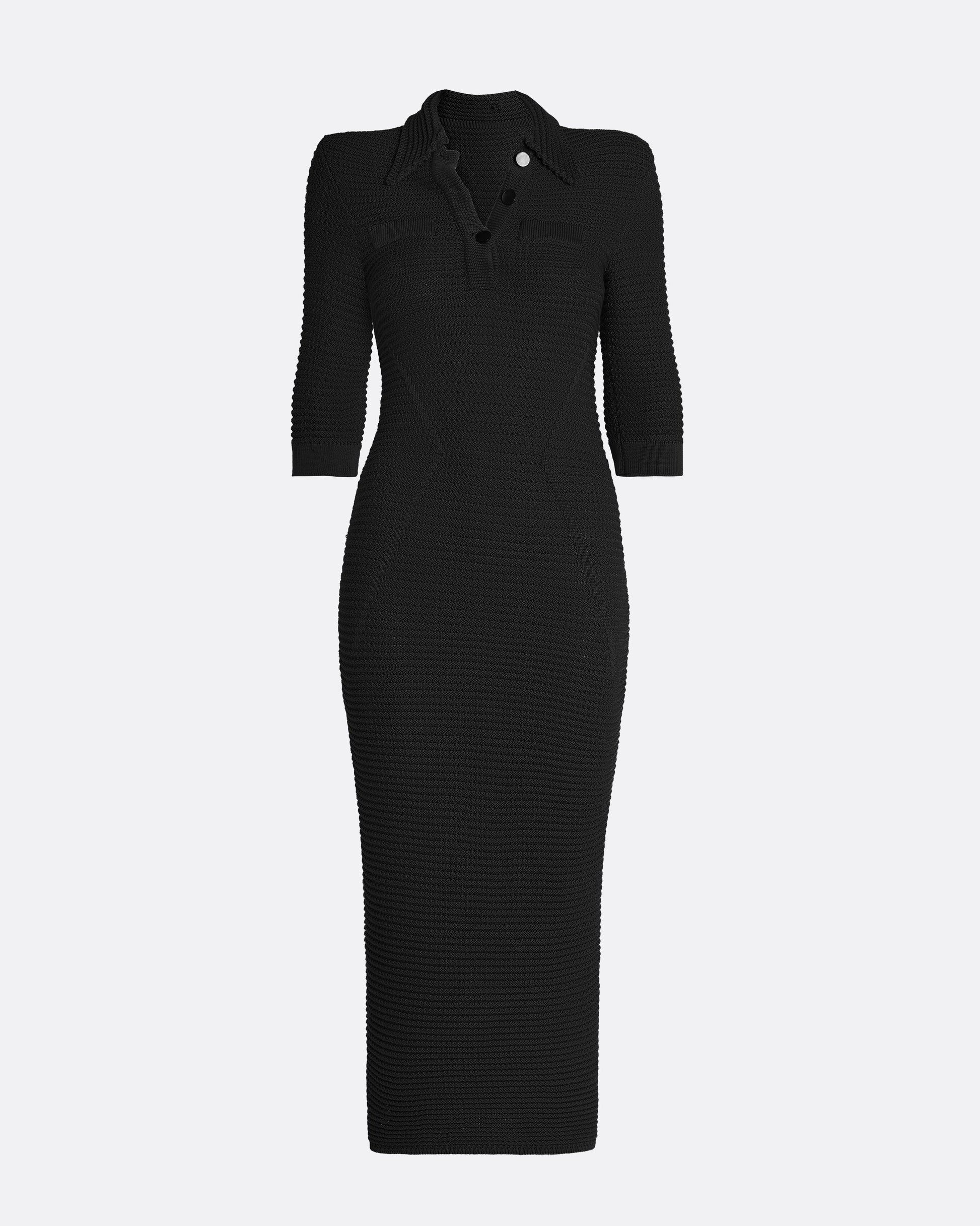 Short sleeve buttoned dress with pocket detailing and collar in black Crochet.
