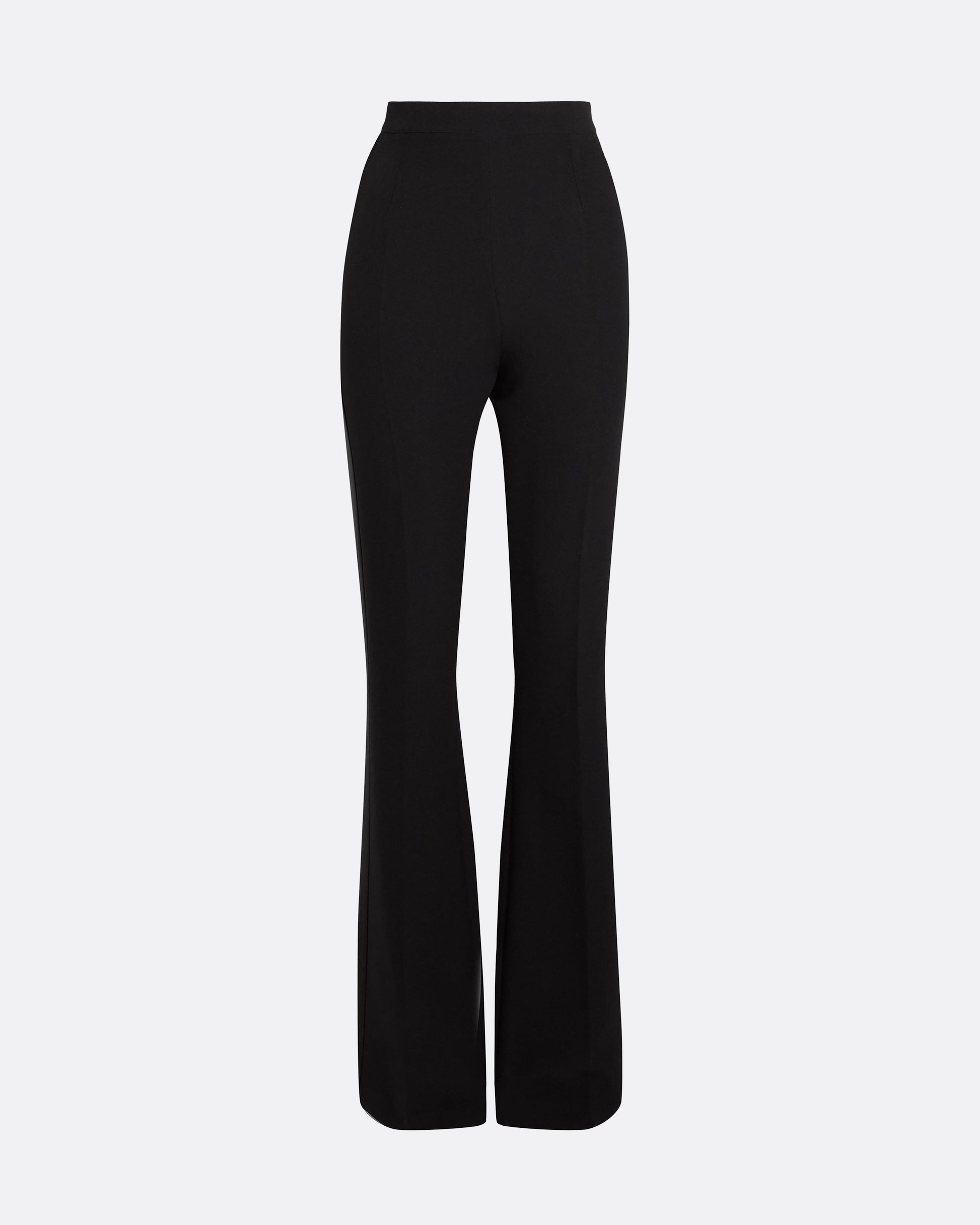 Black Heavy Crepe flared leg, high waist trouser with tuxedo side detail in black Shine Satin Stretch.