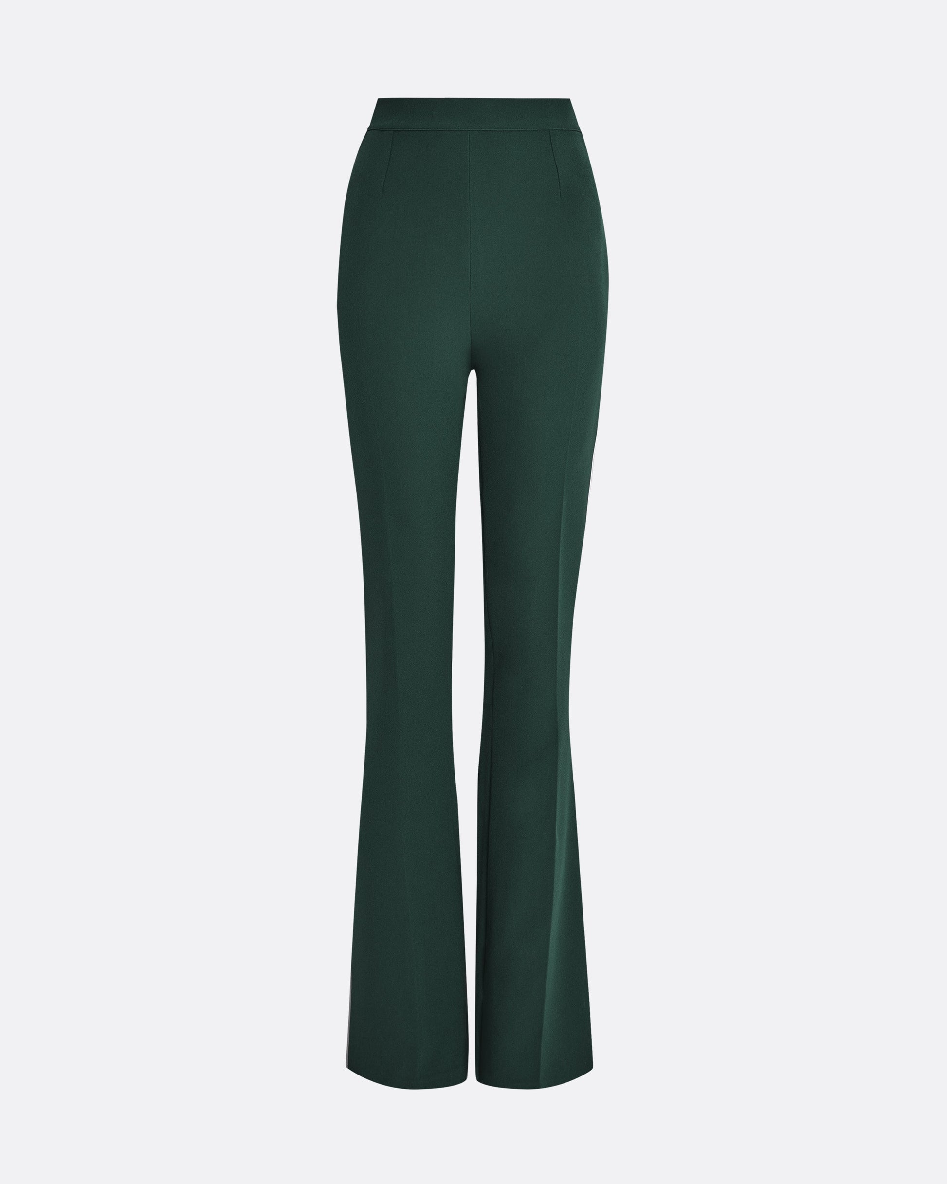 High waisted trousers with side zip and mild flare hem in darkest spruce Heavy Crepe.
