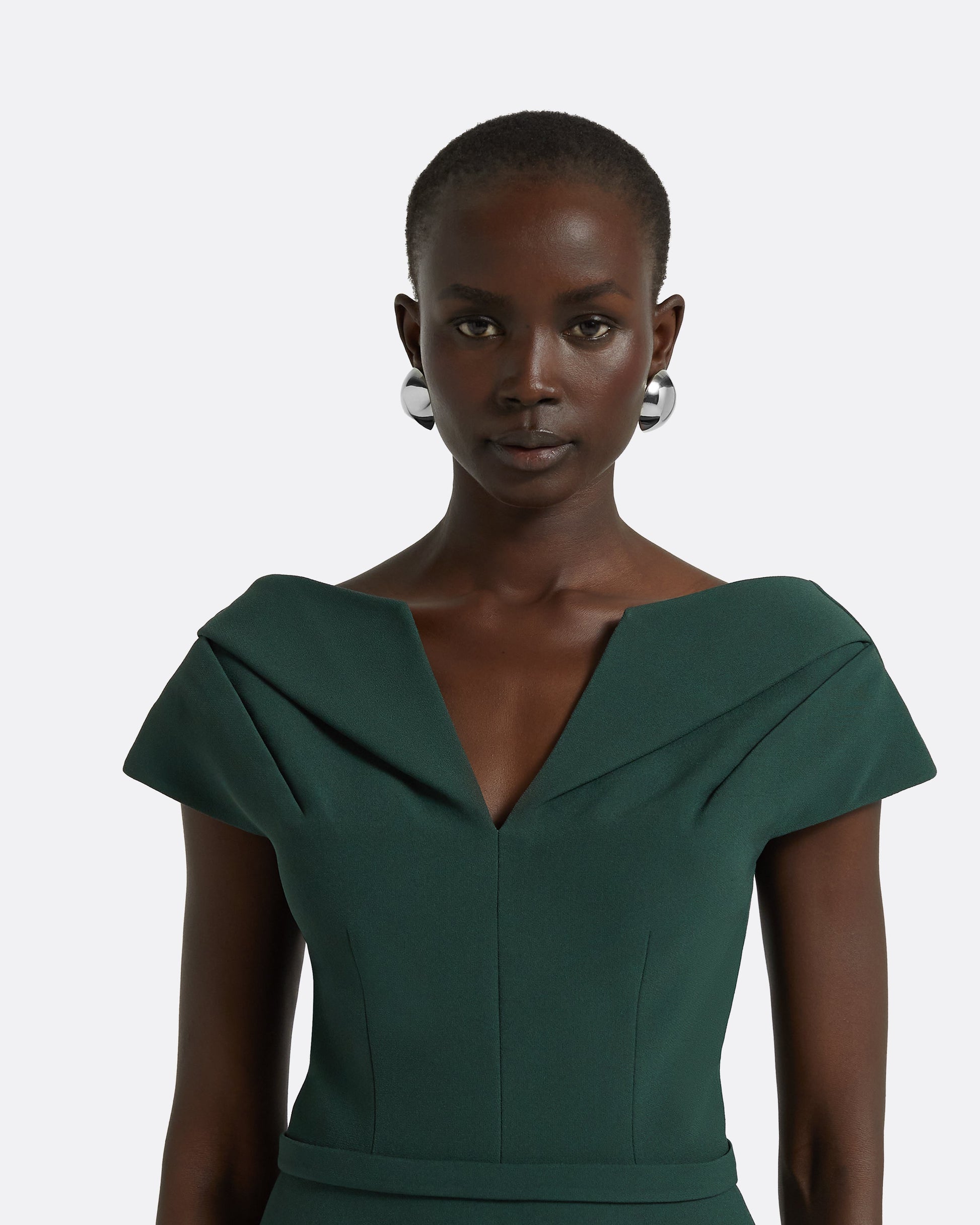 Top with V-neckline and pleated sleeve in darkest spruce Heavy Crepe.