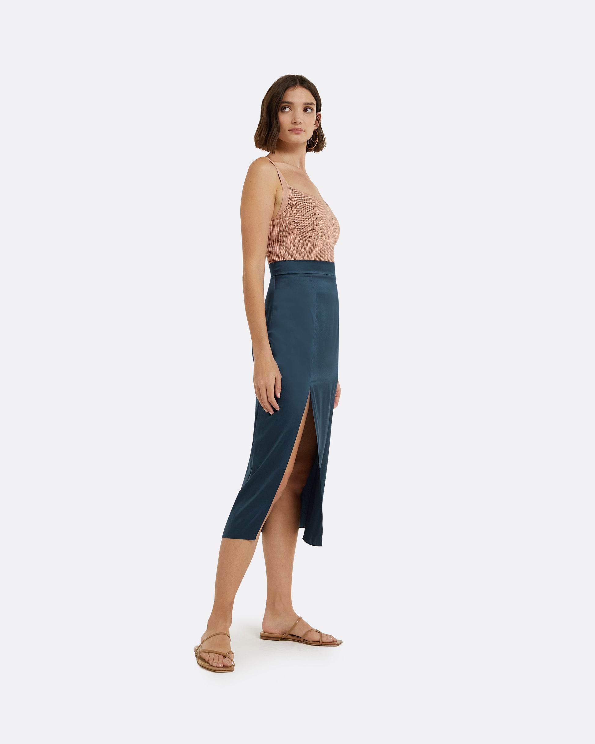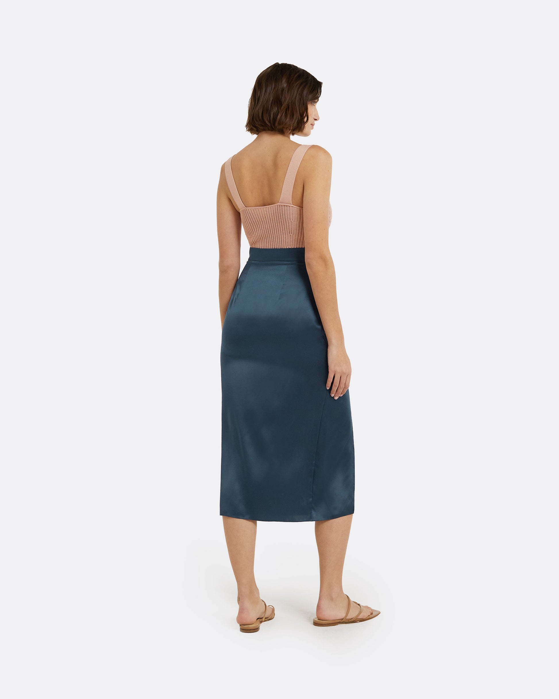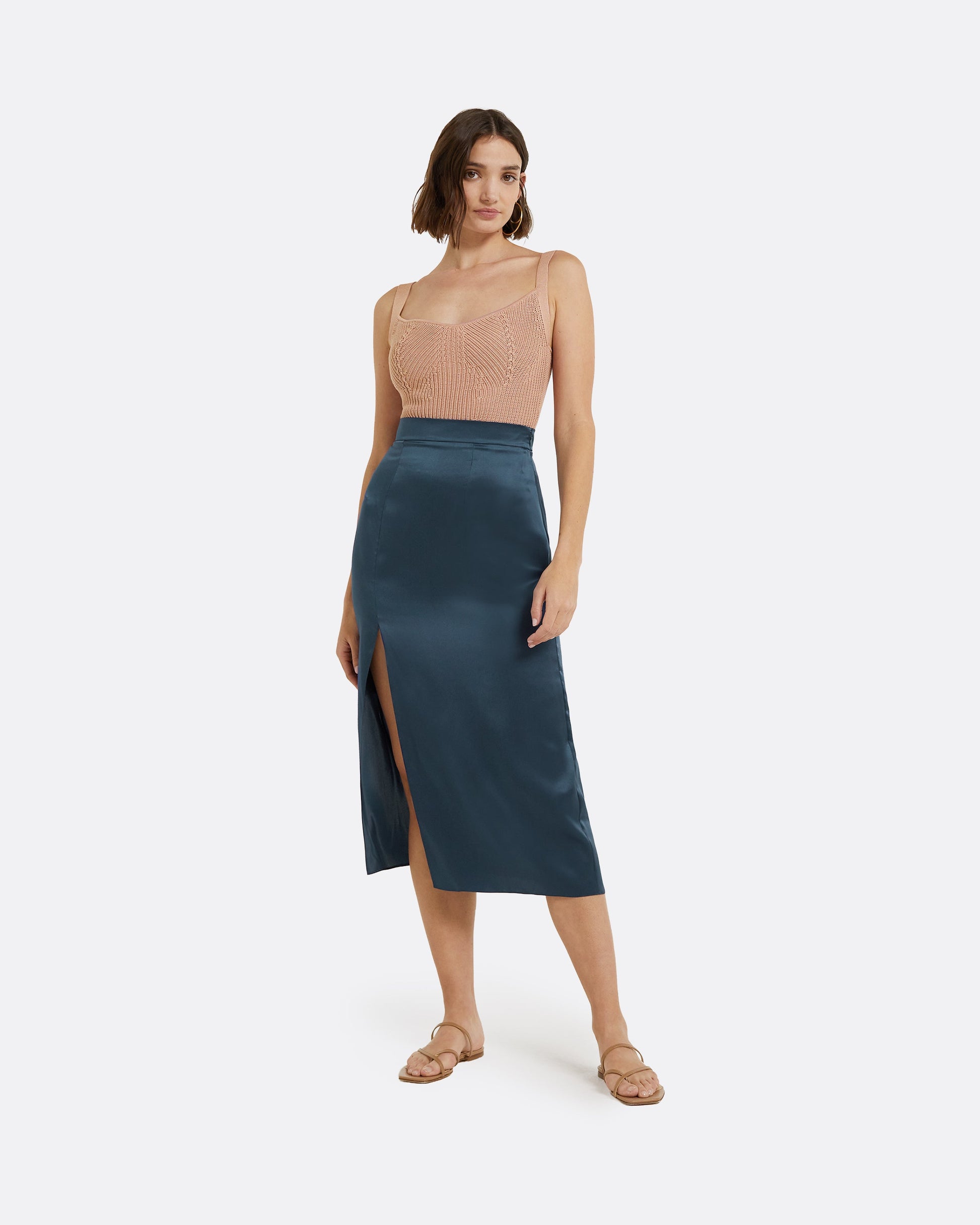 Styled with the Lian skirt in sapphire.