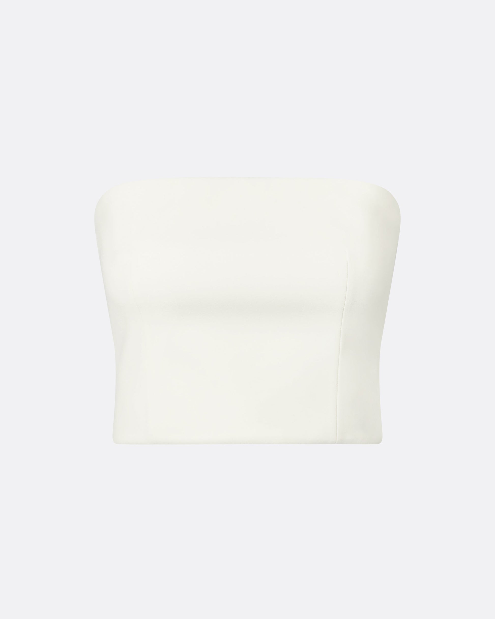Cropped, bustier top with straight neckline in ivory Heavy Crepe.