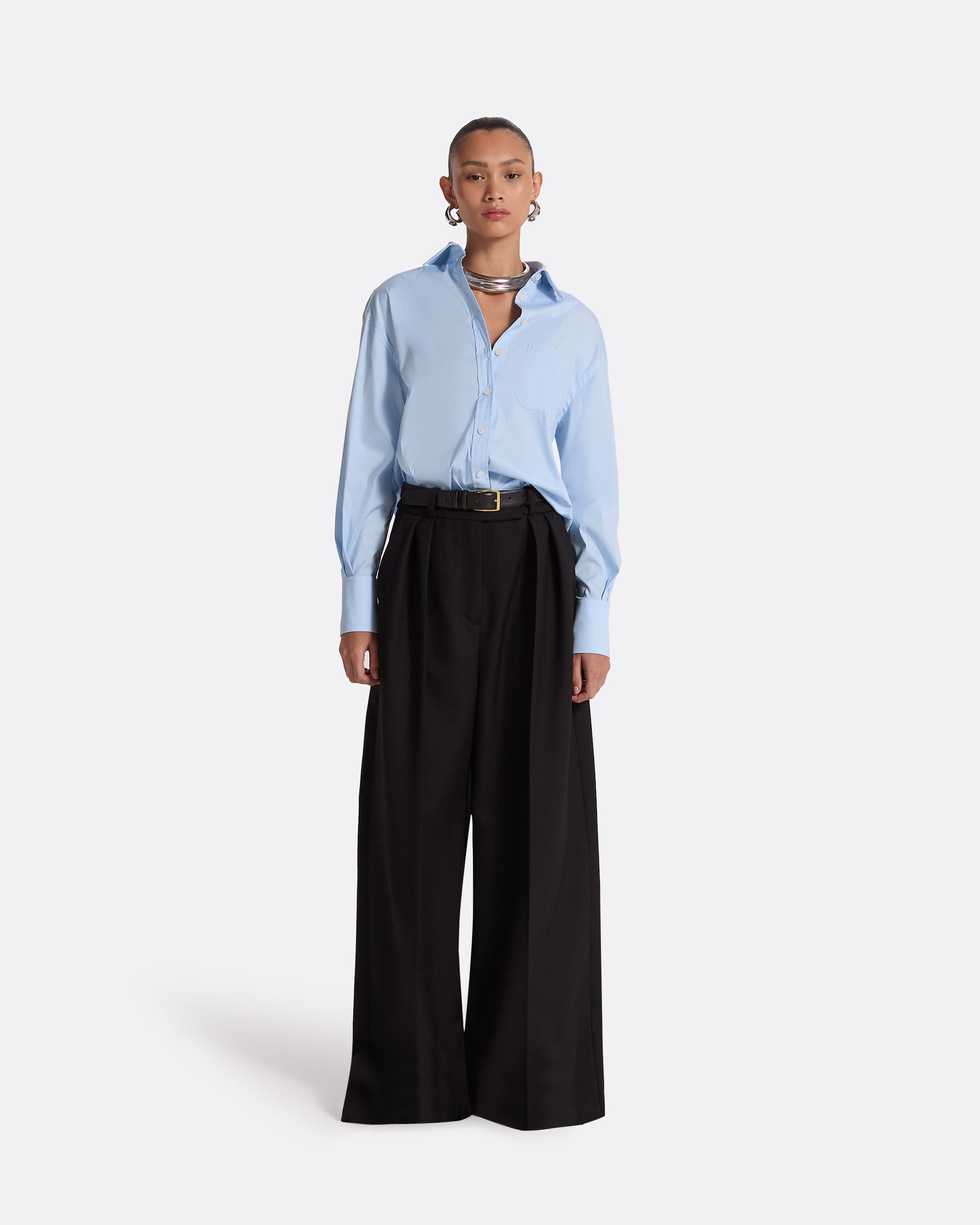 Tailored trousers with low waist and wide leg in black Damon Wool.