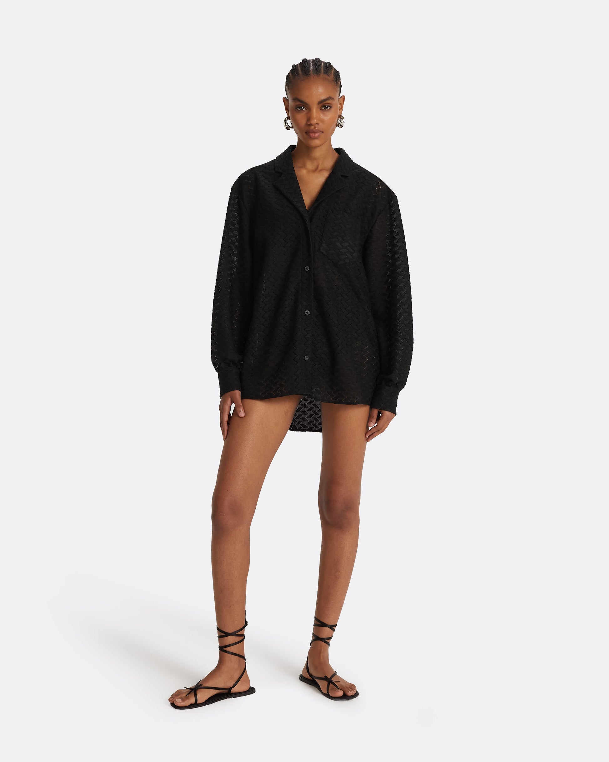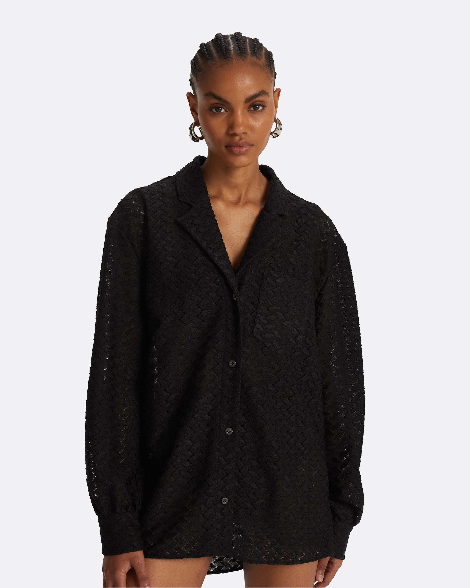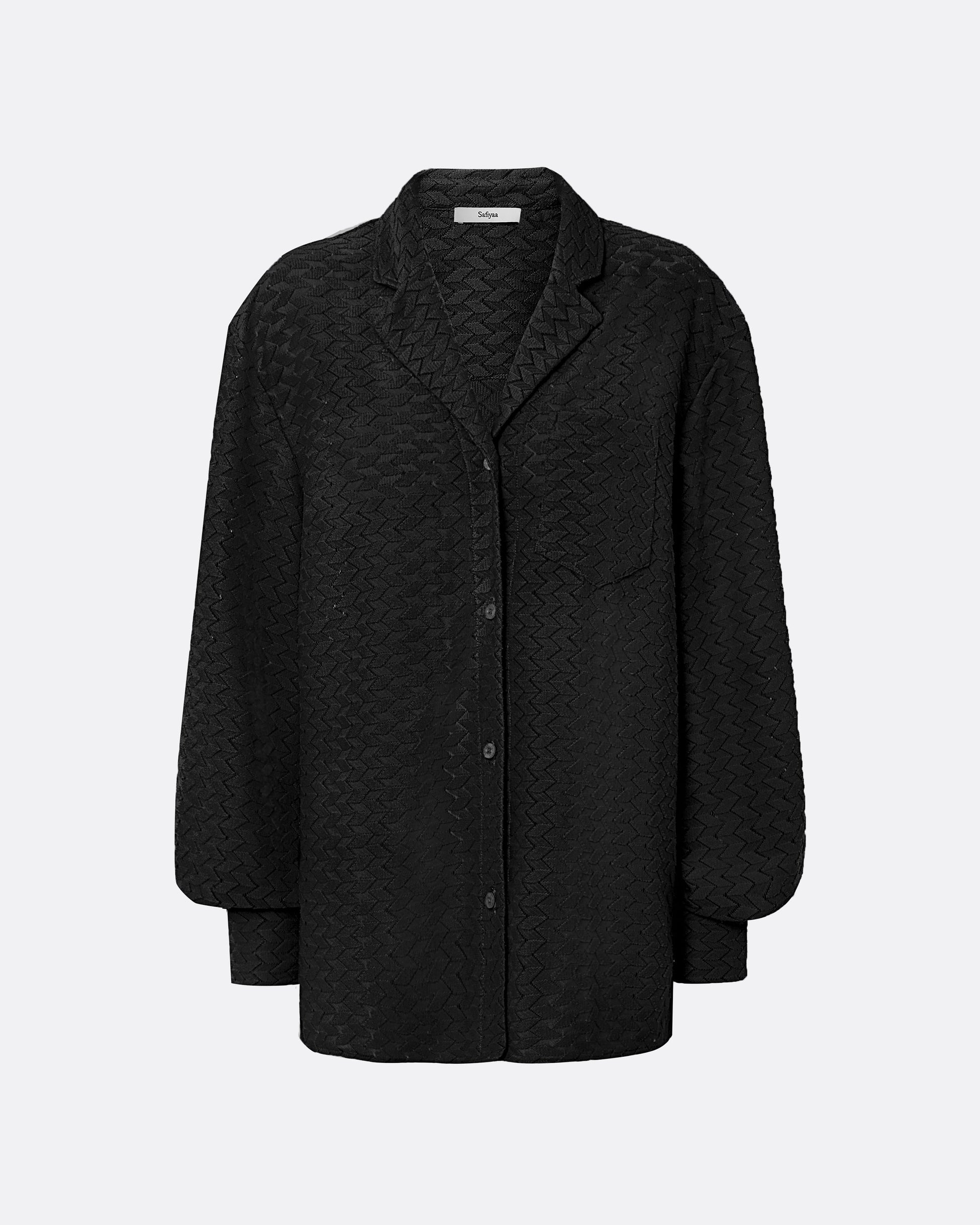 Relaxed style over shirt with pocket detail in black Chevron Mesh.