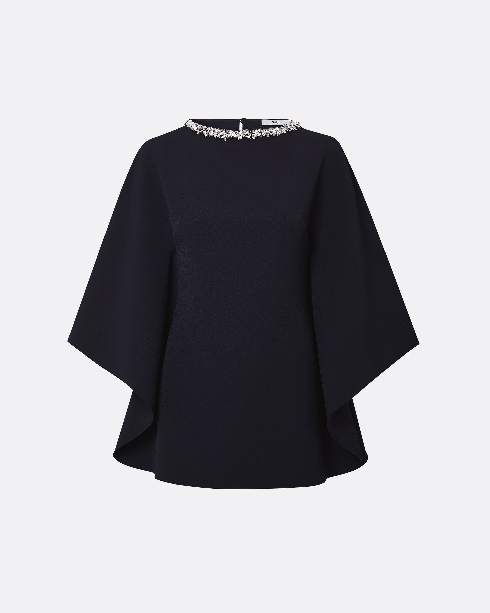 Flowing kaftan top with flattering seam detail in midnight navy Heavy Crepe with crystal-smoke Crystal Trim B.
