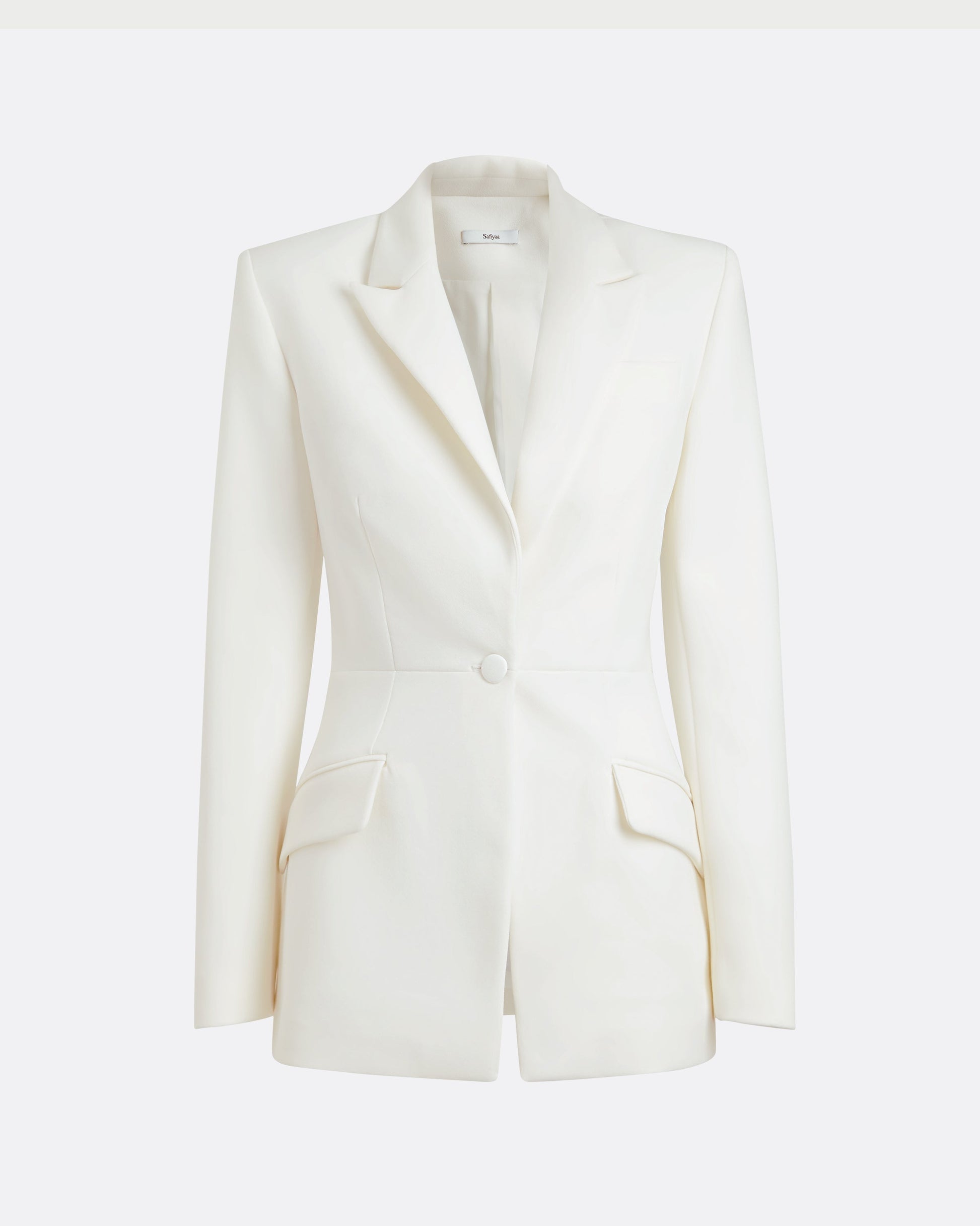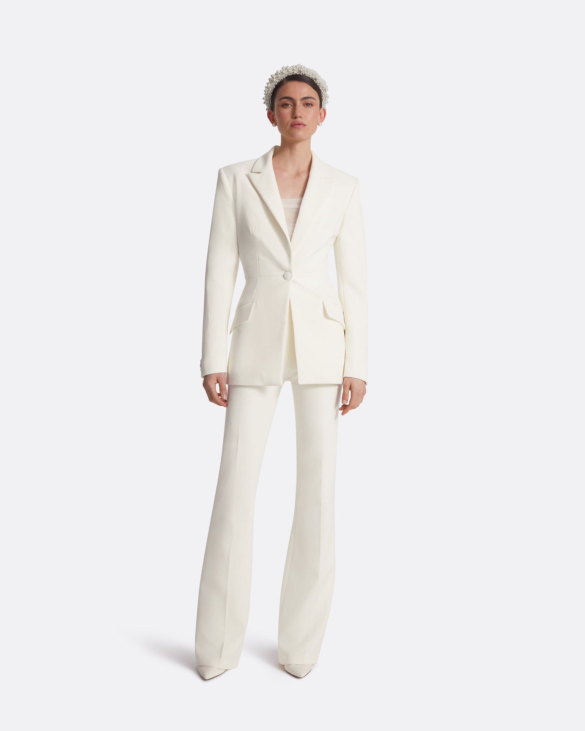 Classic tailored blazer with sharp details in ivory Heavy Crepe.
