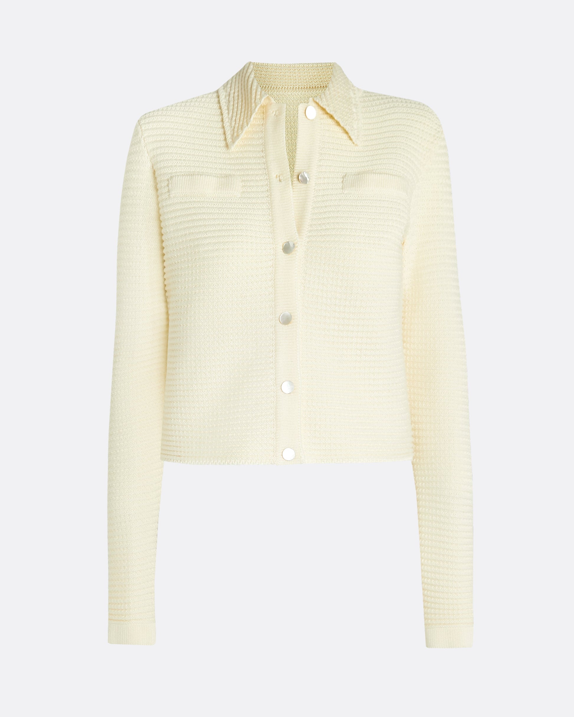 Long sleeve, straight cut jacket with collar in ivory Crochet.