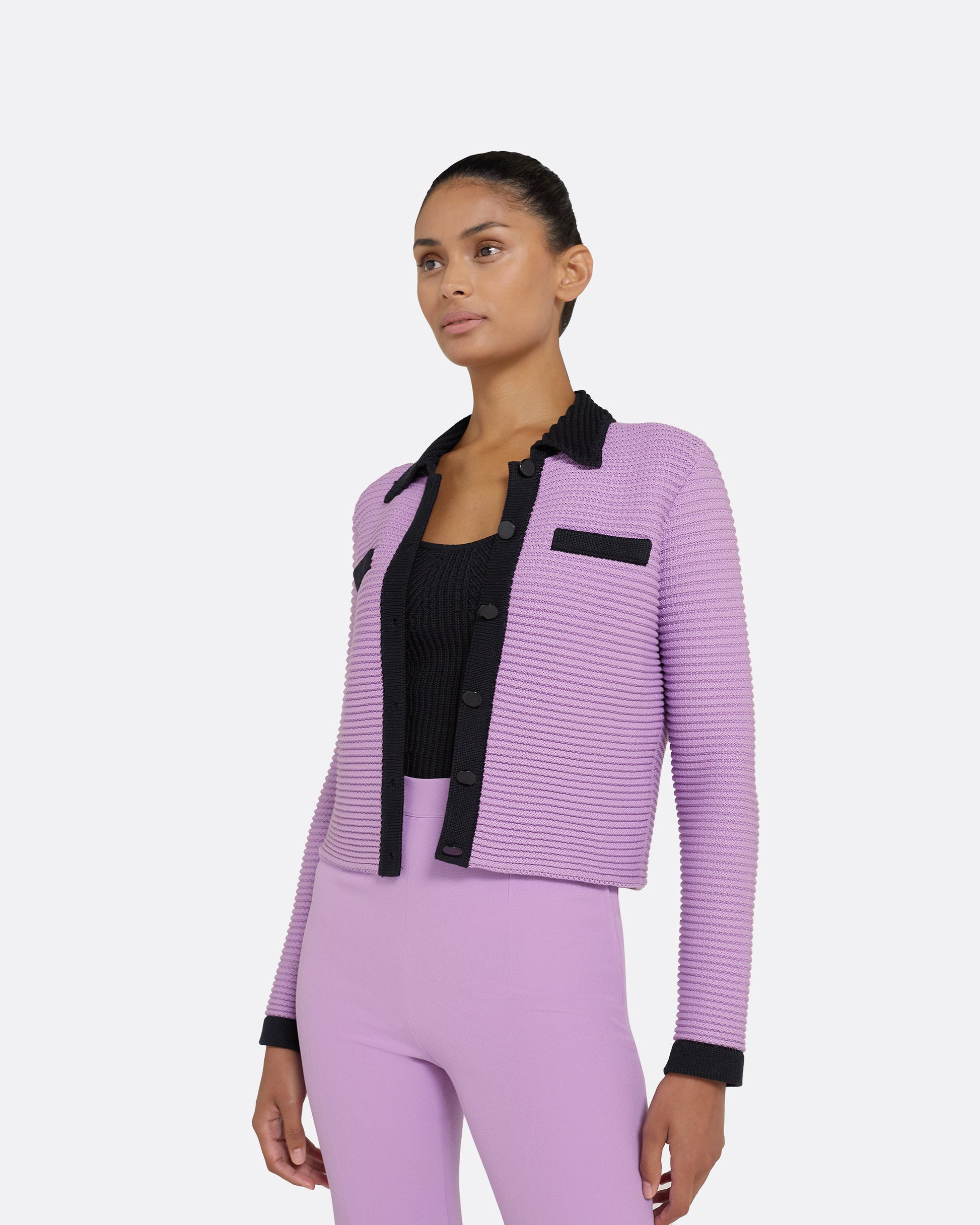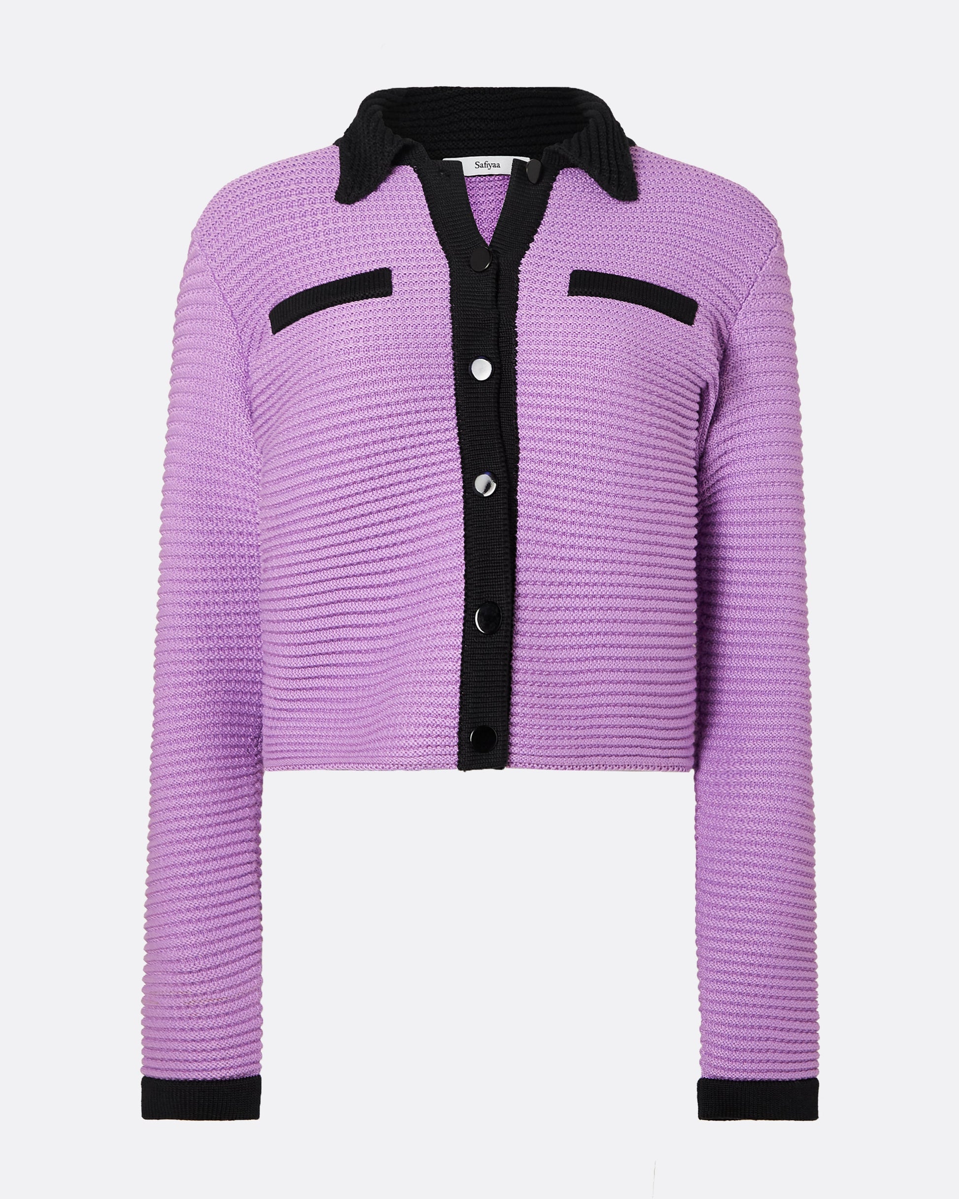 Styled with the Amal knit top in navy and Halluana trousers in lupine.
