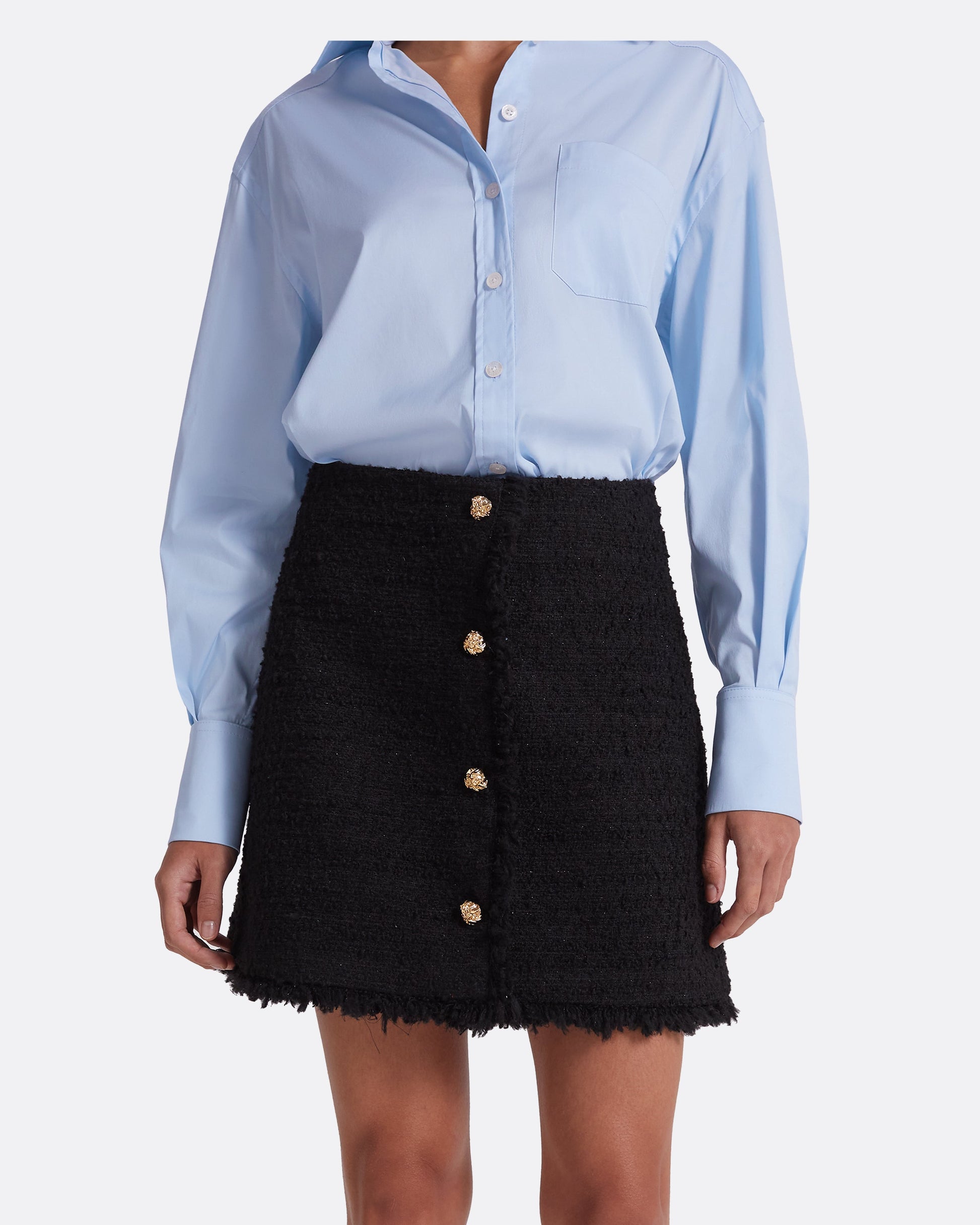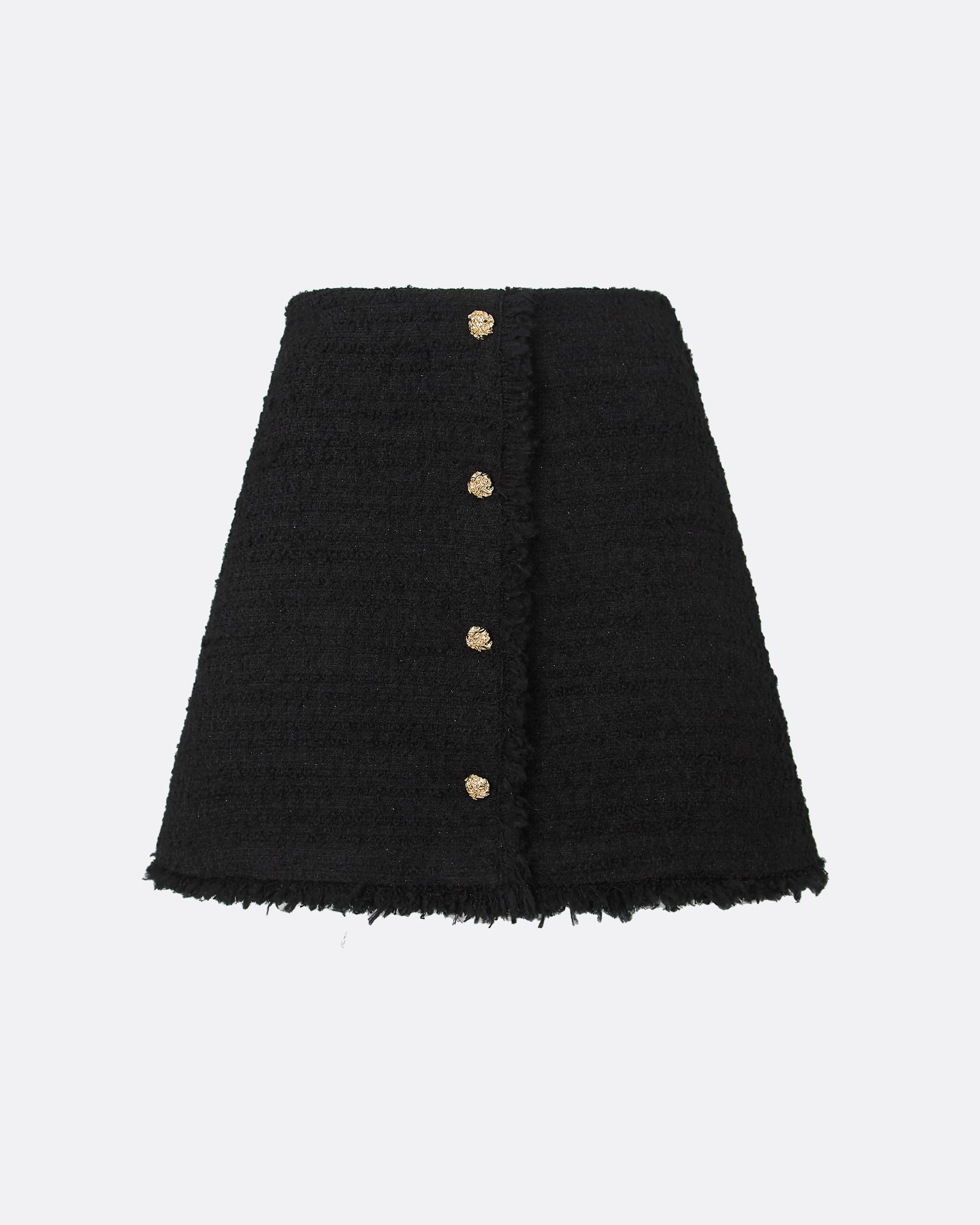 Mini, A-line skirt with button detail in black Munich Tweed.