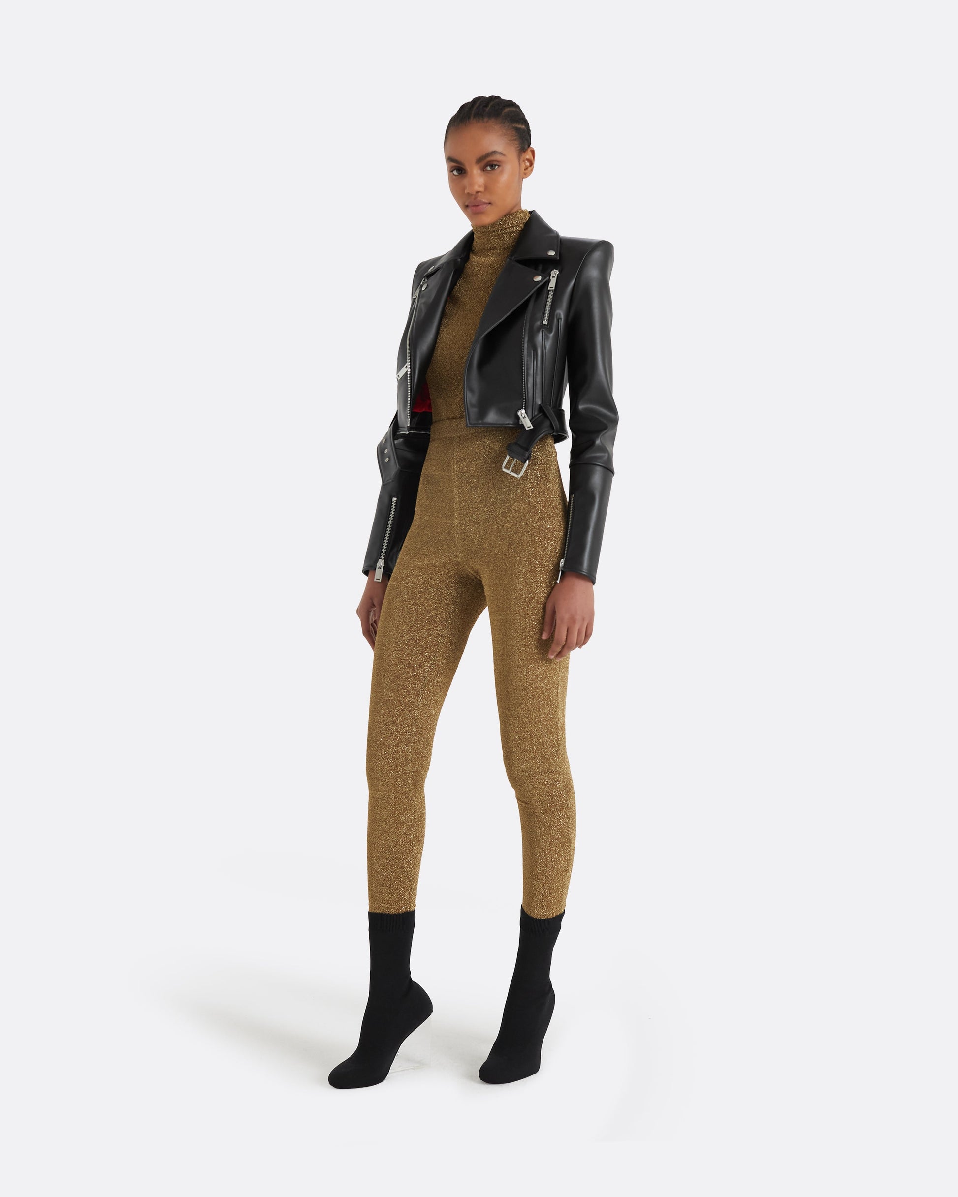 Styled with the Alexa trousers in black, Brenna tights in gold and Euphemie jacket in black.
