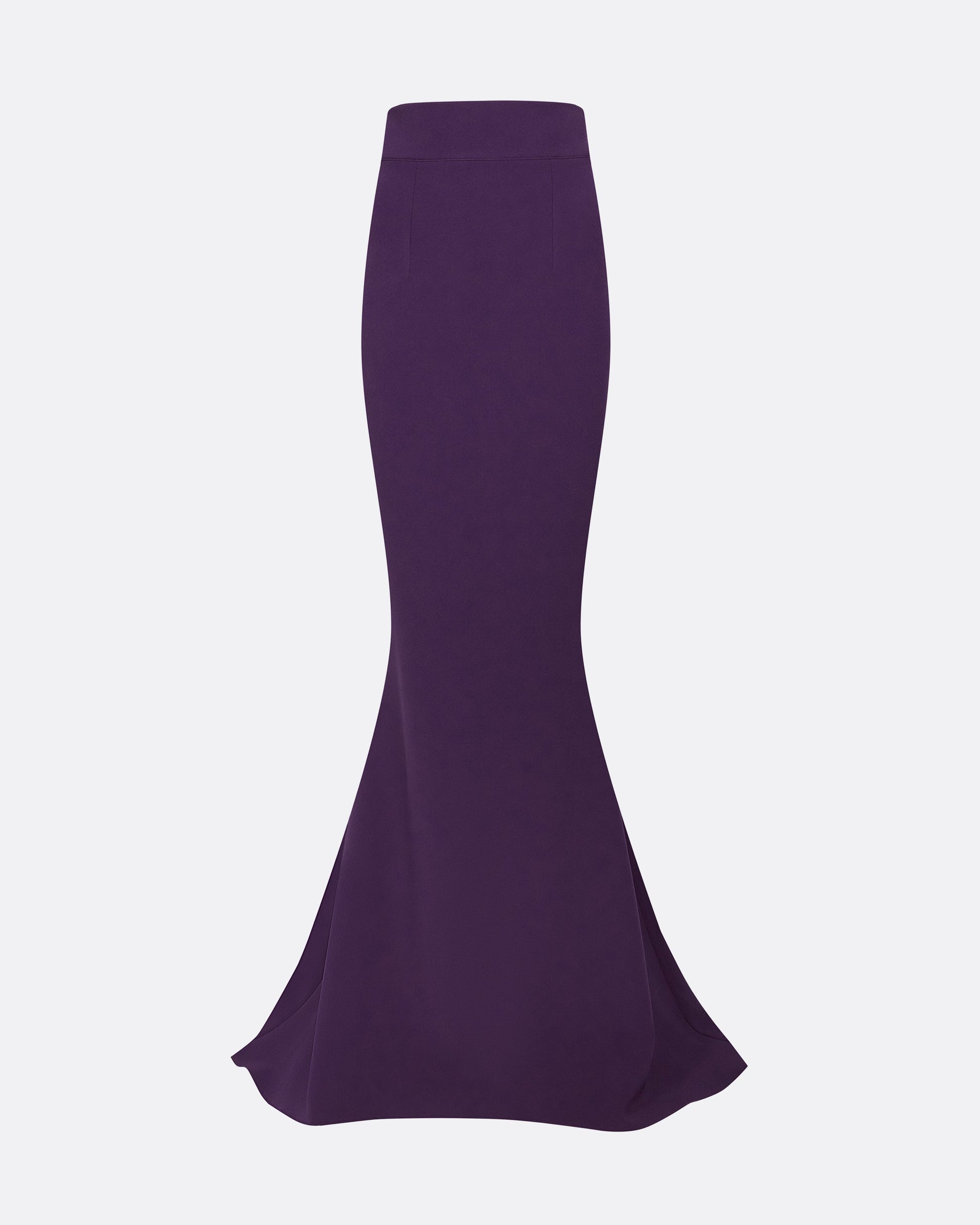 High waisted, fishtail long skirt in blackberry.