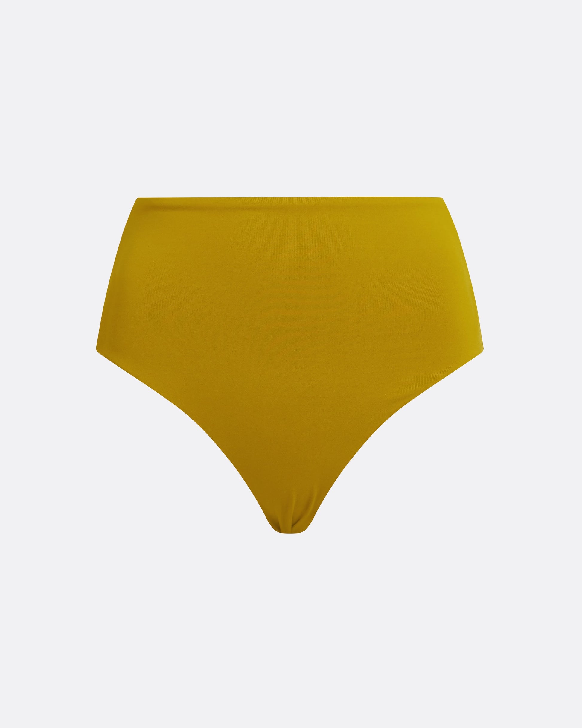 Flattering high waisted bikini bottom in chartreuse Vertigo Jersey.
