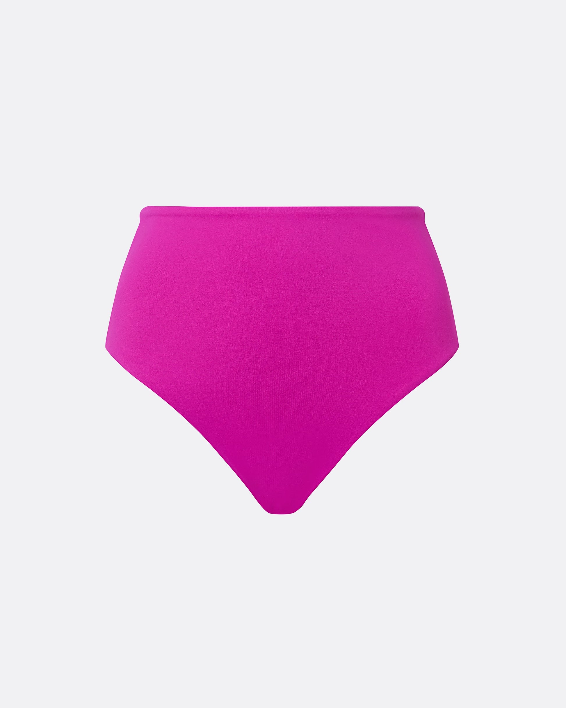 Flattering high waisted bikini bottom in magenta Vertigo Jersey.