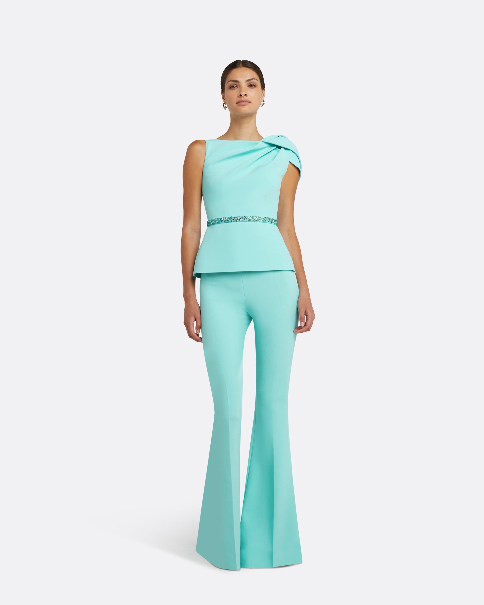 Flared leg trousers with side zip in positano Heavy Crepe.