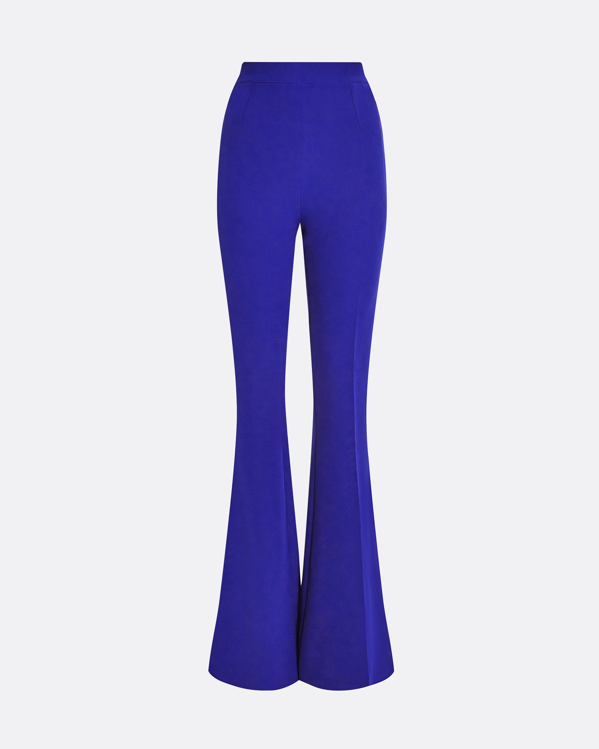 Flared leg trousers with side zip in azure blue Heavy Crepe.
