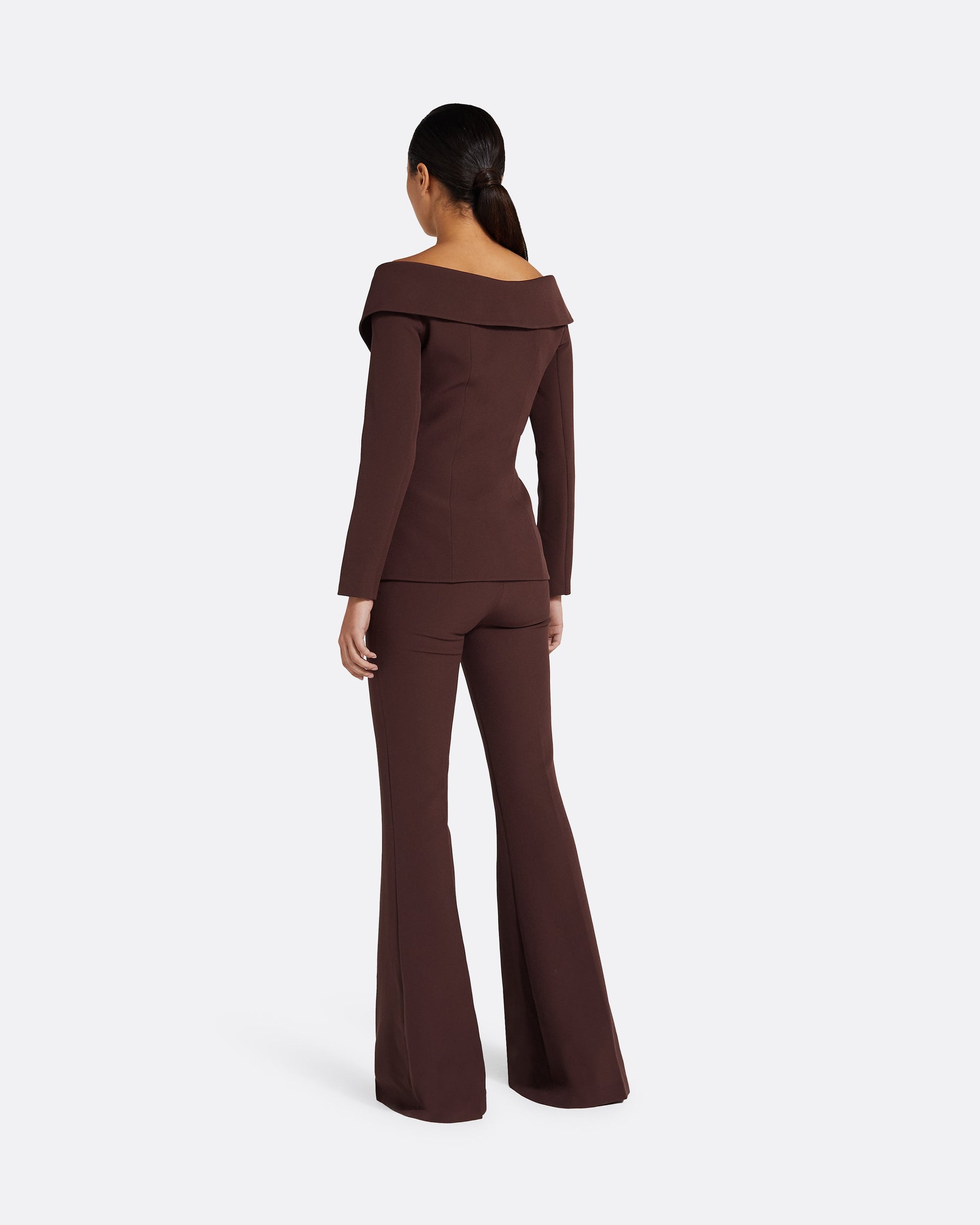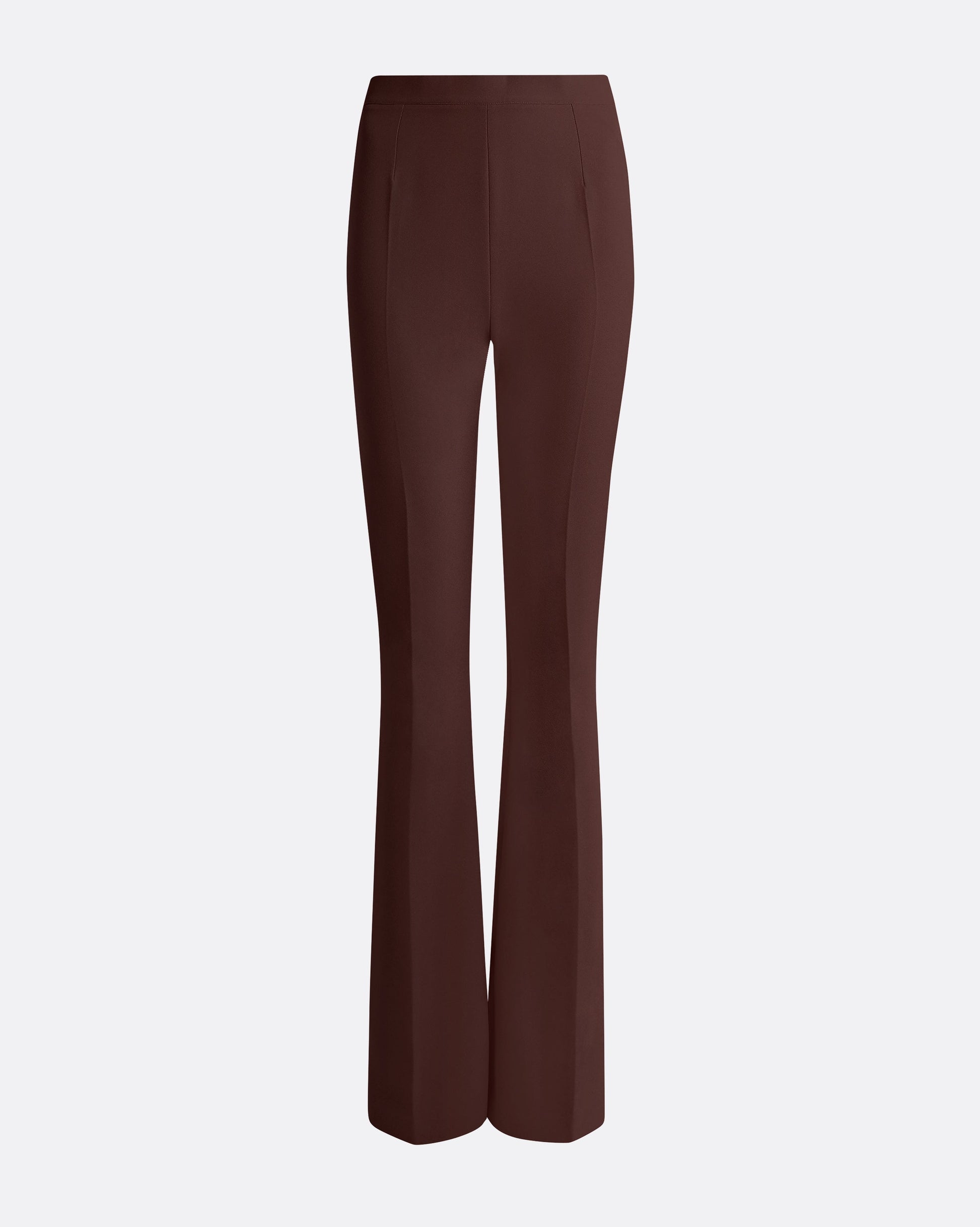 Flared leg trousers with side zip in burgundy.
