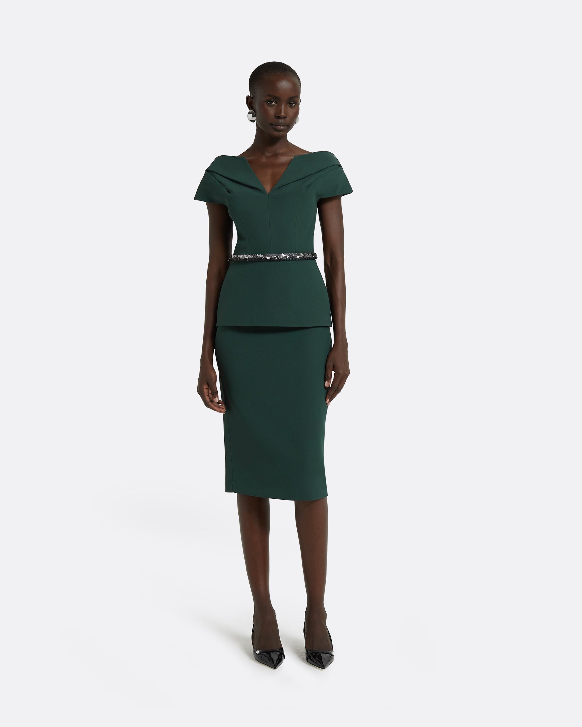 Classic pencil skirt in darkest spruce Heavy Crepe.