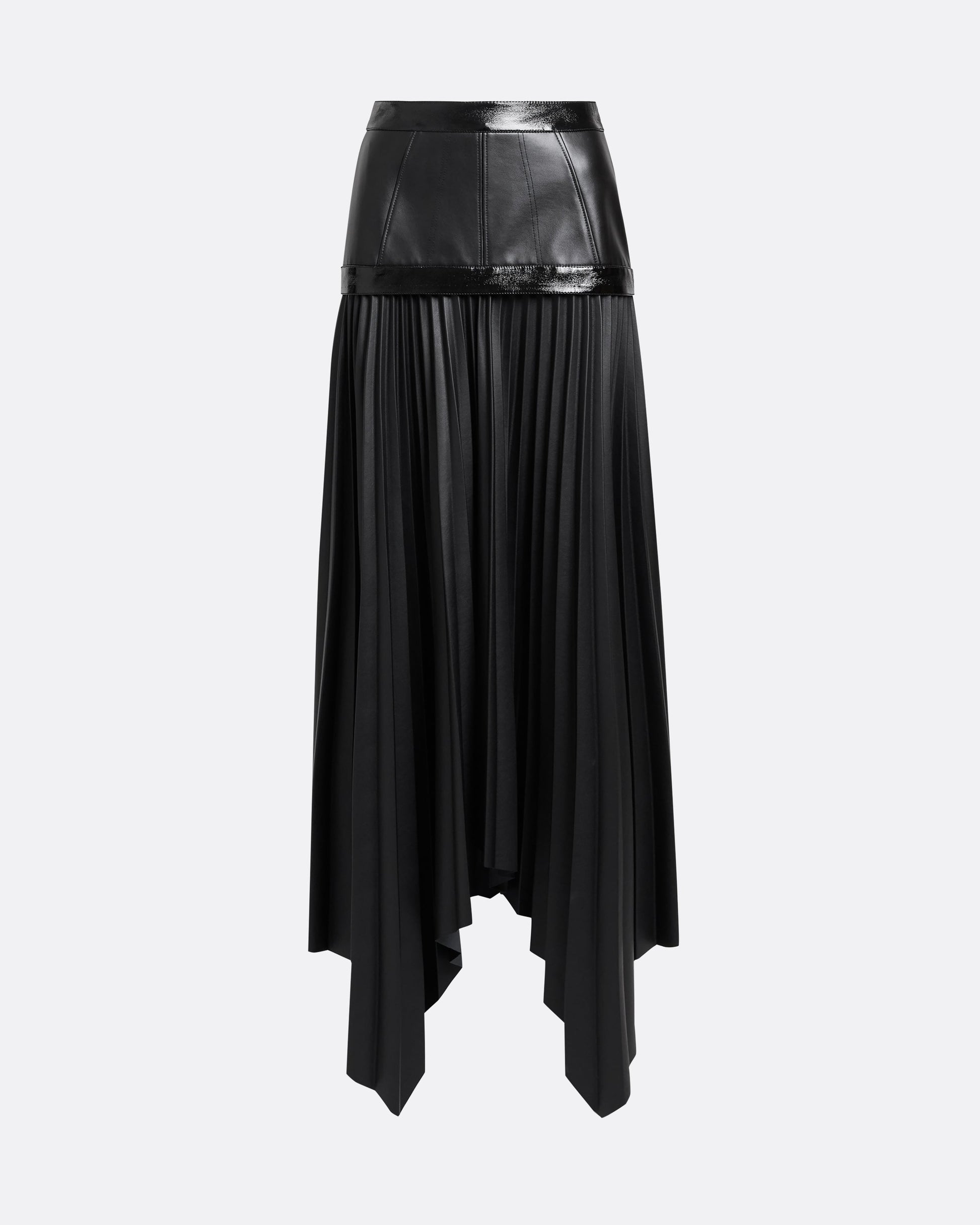 Pleated skirt with corset detailing and contrast finishings in black Cactus Vegan Leather, Vegan Leather and High Shine Pu.