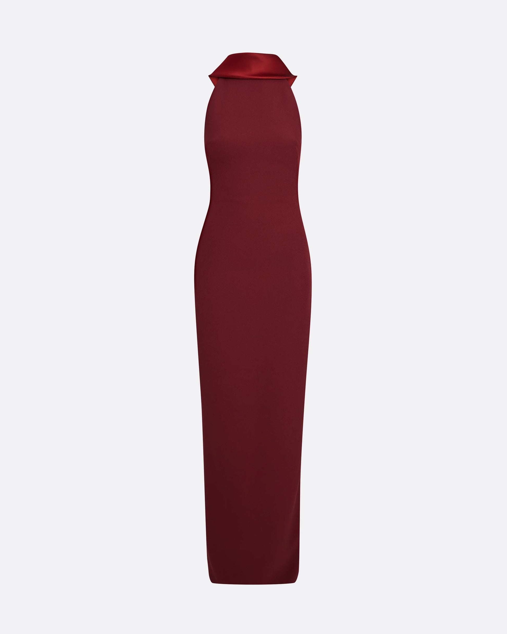 Contrast high neck column gown in swinton Heavy Crepe and Tech Duchess.