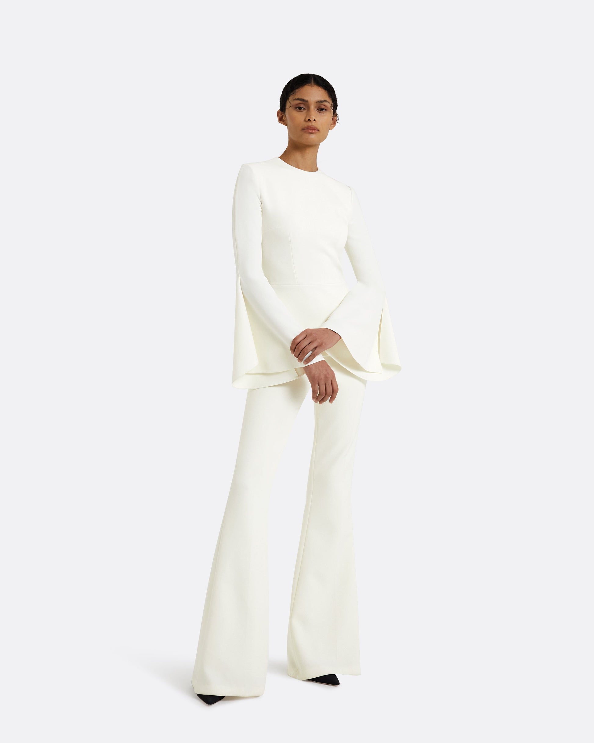 Shown with the Halluana flare leg trouser in ivory.