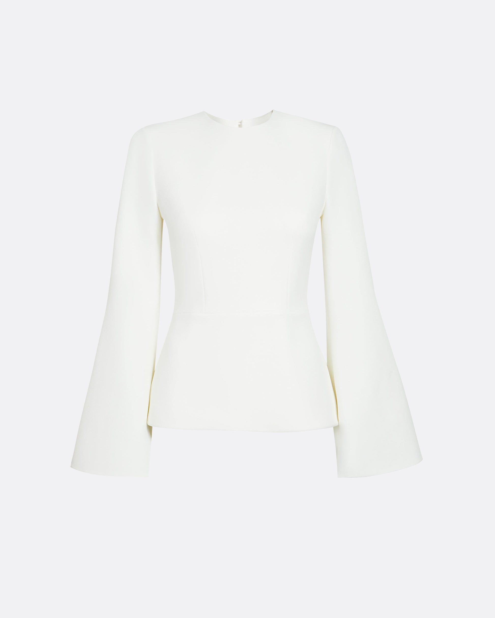 Uncomplicated top with a high round neckline and wide open sleeves in ivory.
