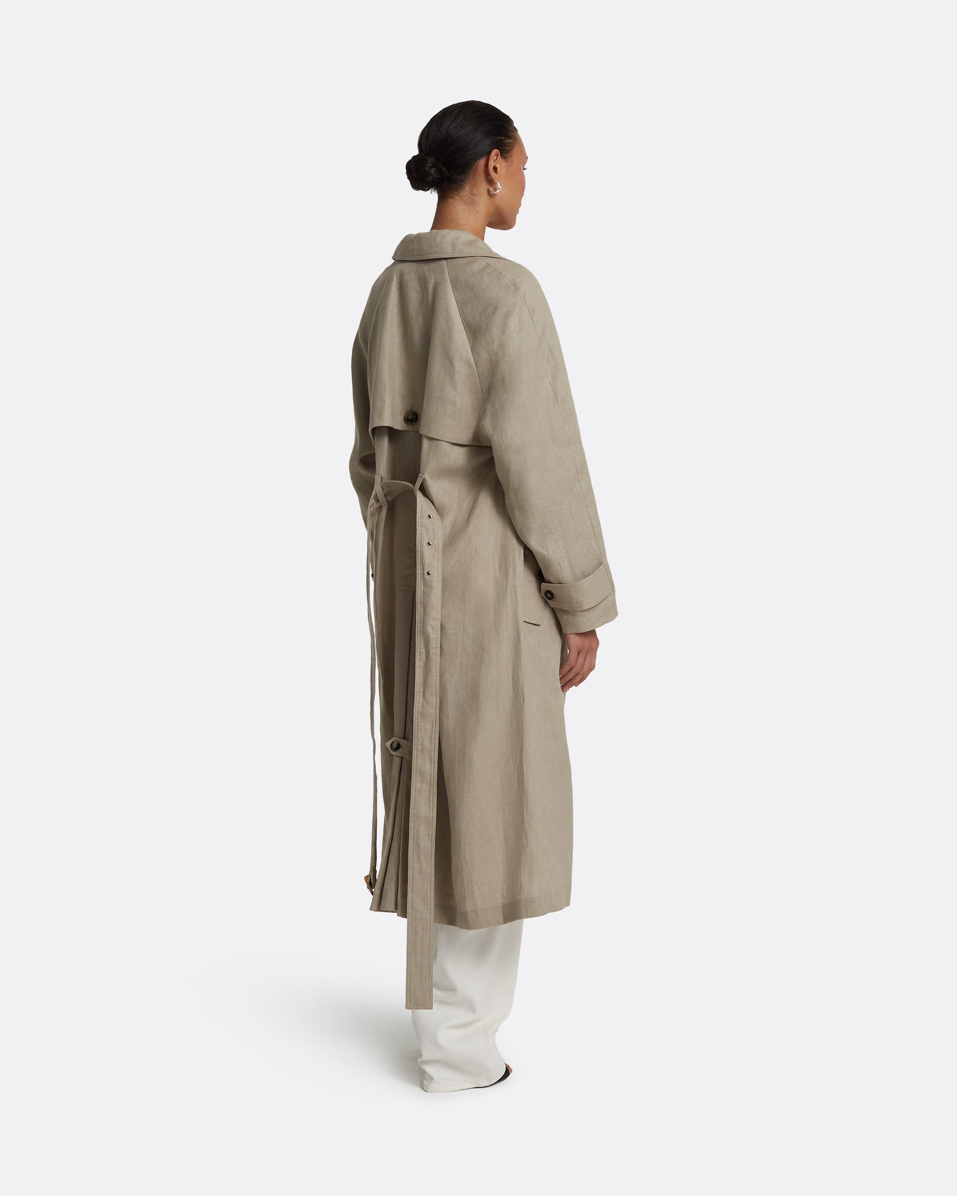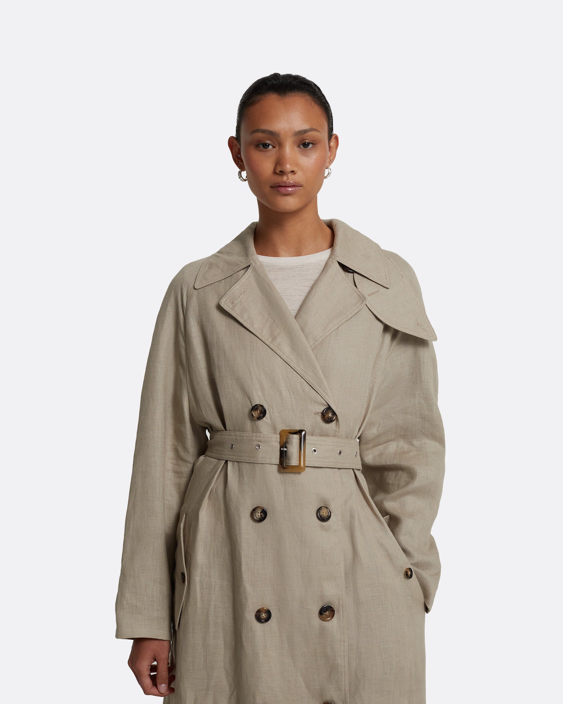 Relaxed, classic trench coat with detailing in stone Natural Linen.