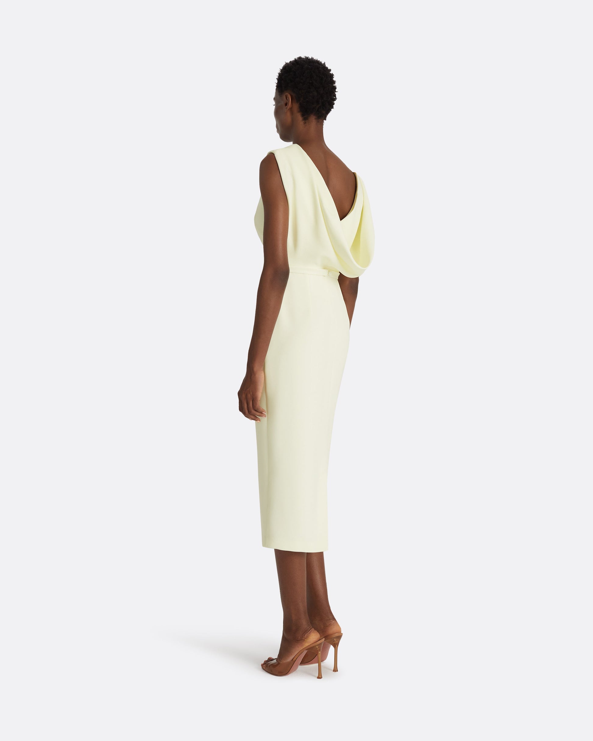 Midi dress with soft draped neckline in sorbet Heavy Crepe.