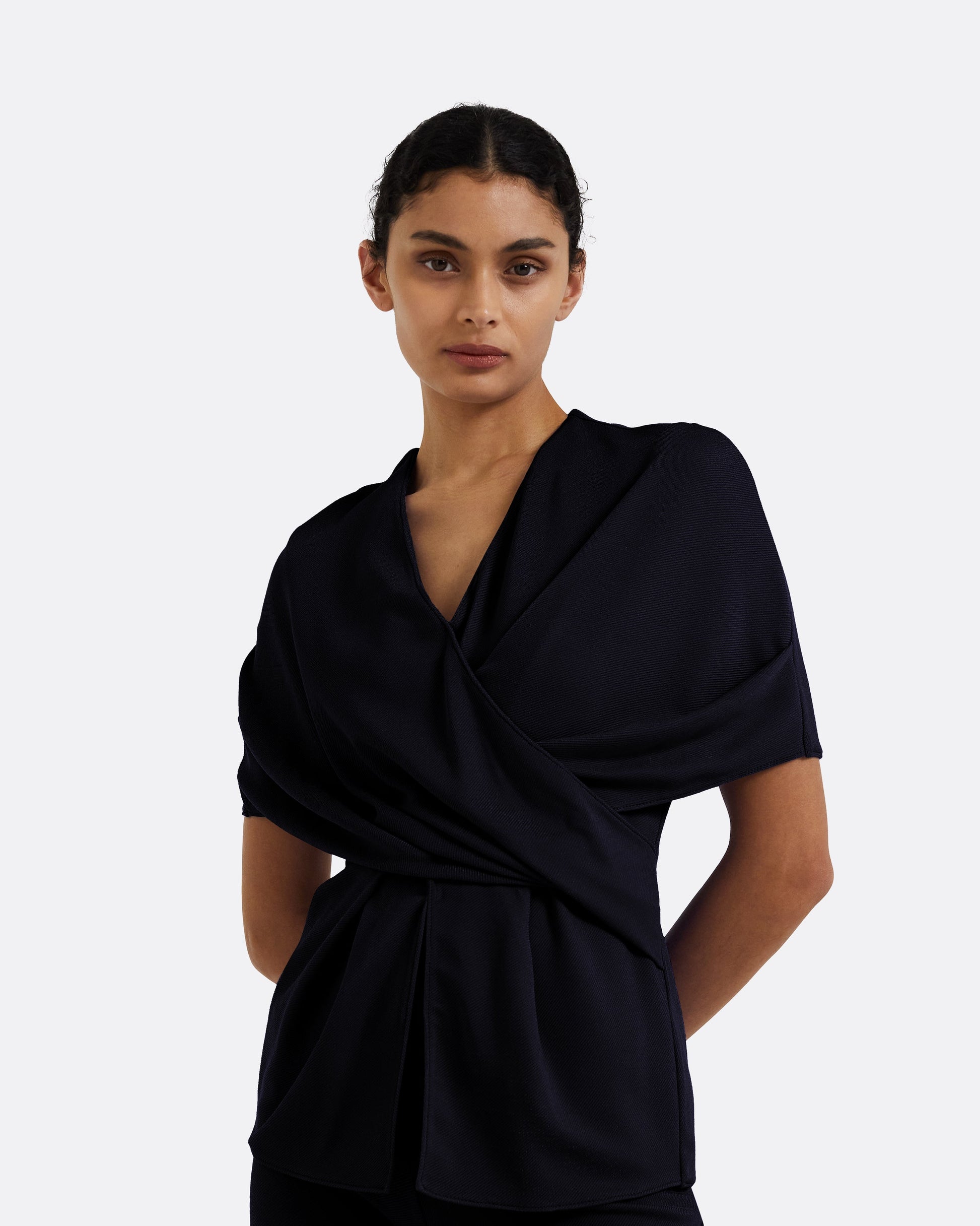 Classic straight leg trousers with side zip in navy Fiona Jersey.