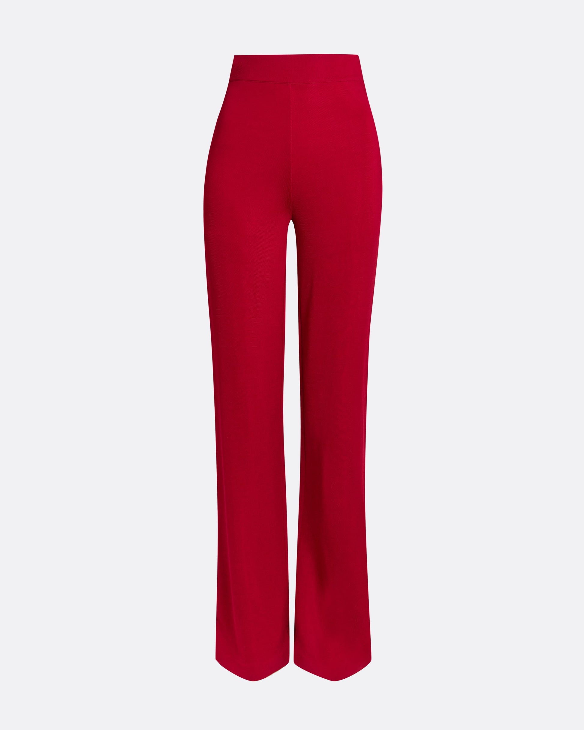 Classic straight leg trousers with side zip in ruby Fiona Jersey.