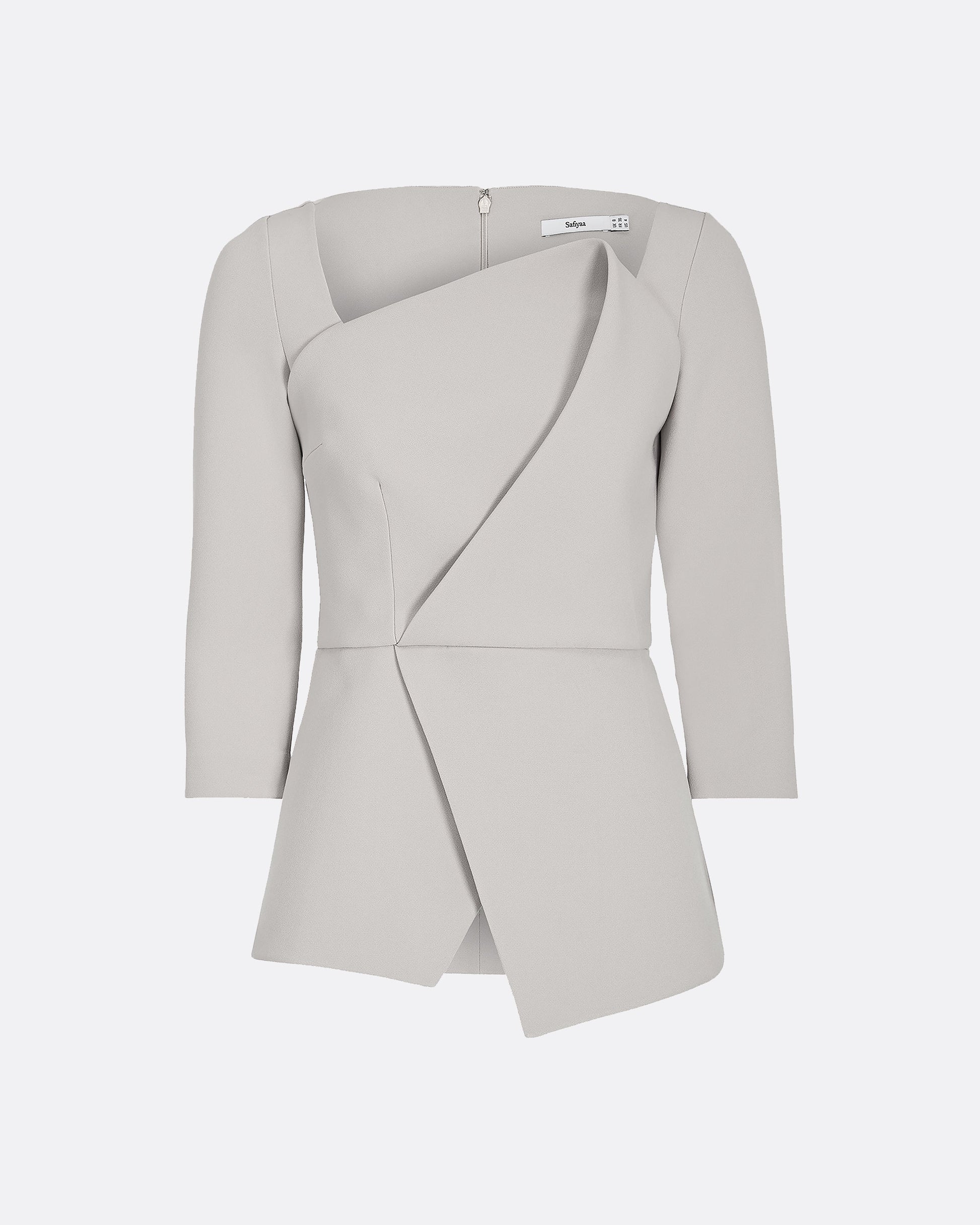 3/4 sleeve top with front foldover drape in clay.