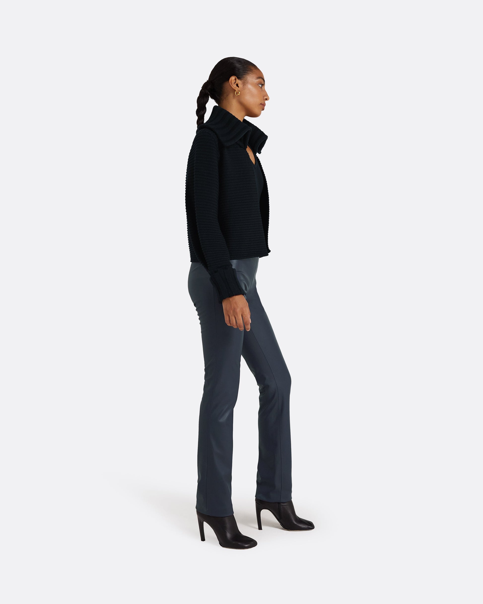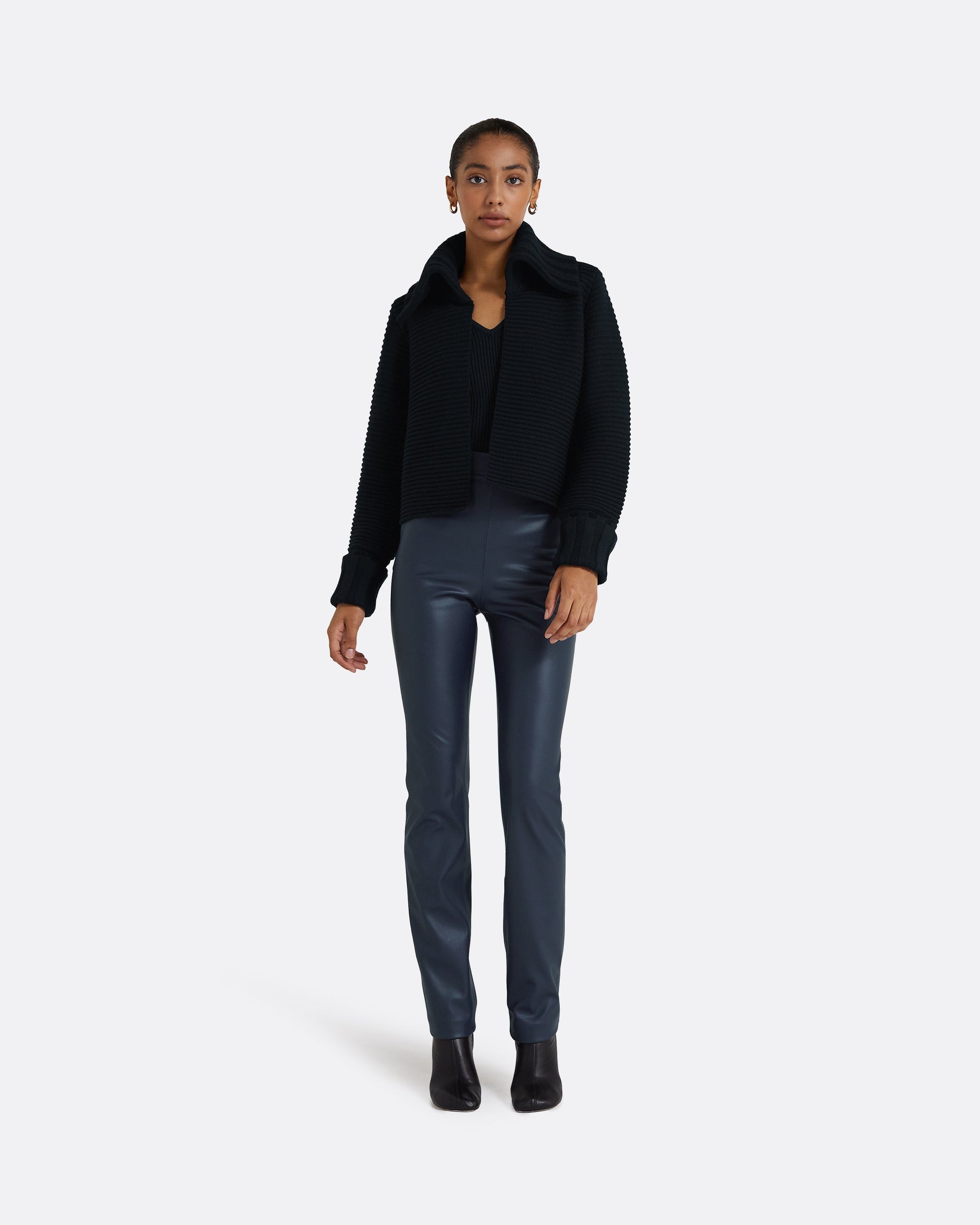 Styled with the Sabrine knit and Goldie Vegan Leather in navy.