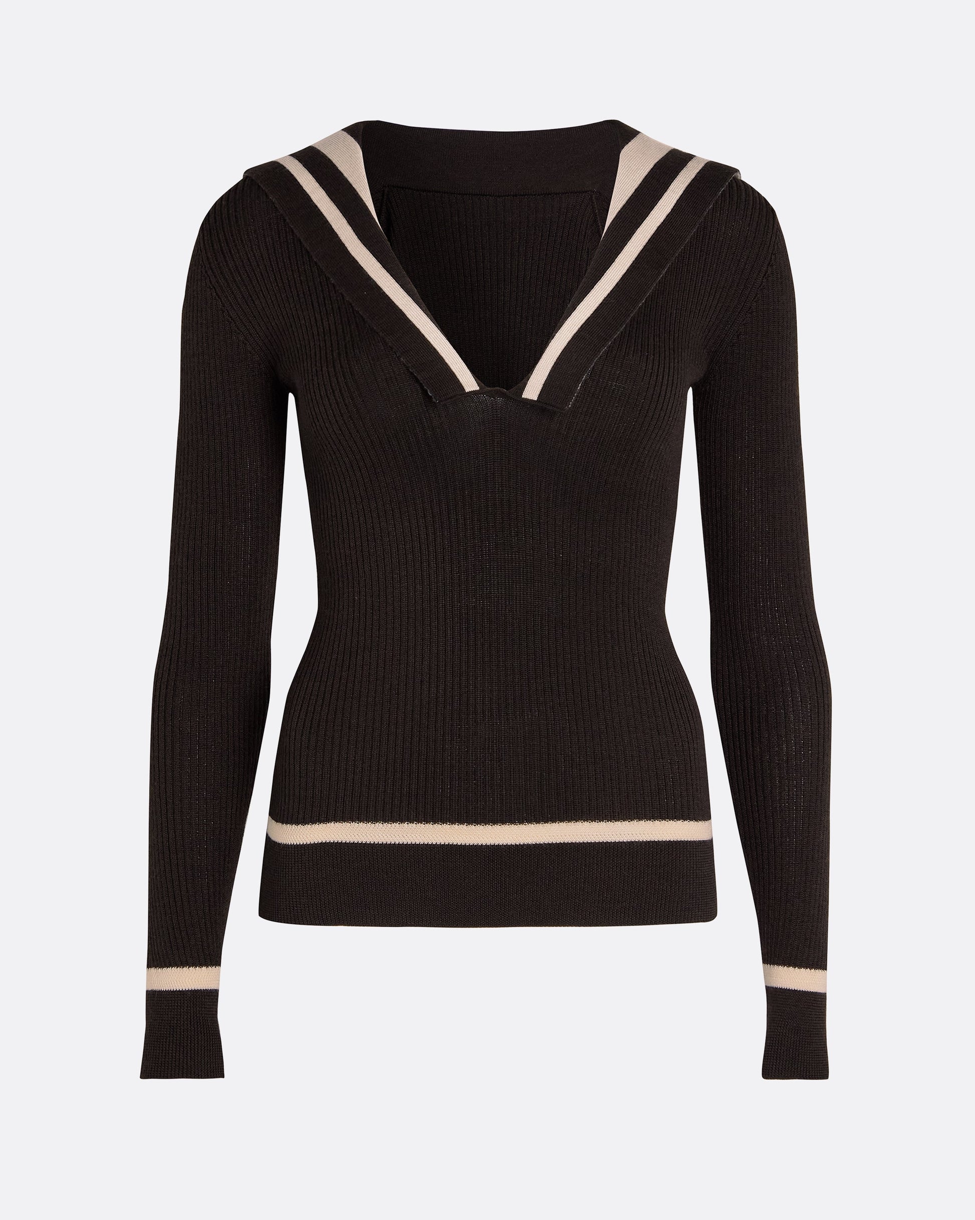 Long sleeved sweater with sailorman collar in dark mocha/powder.