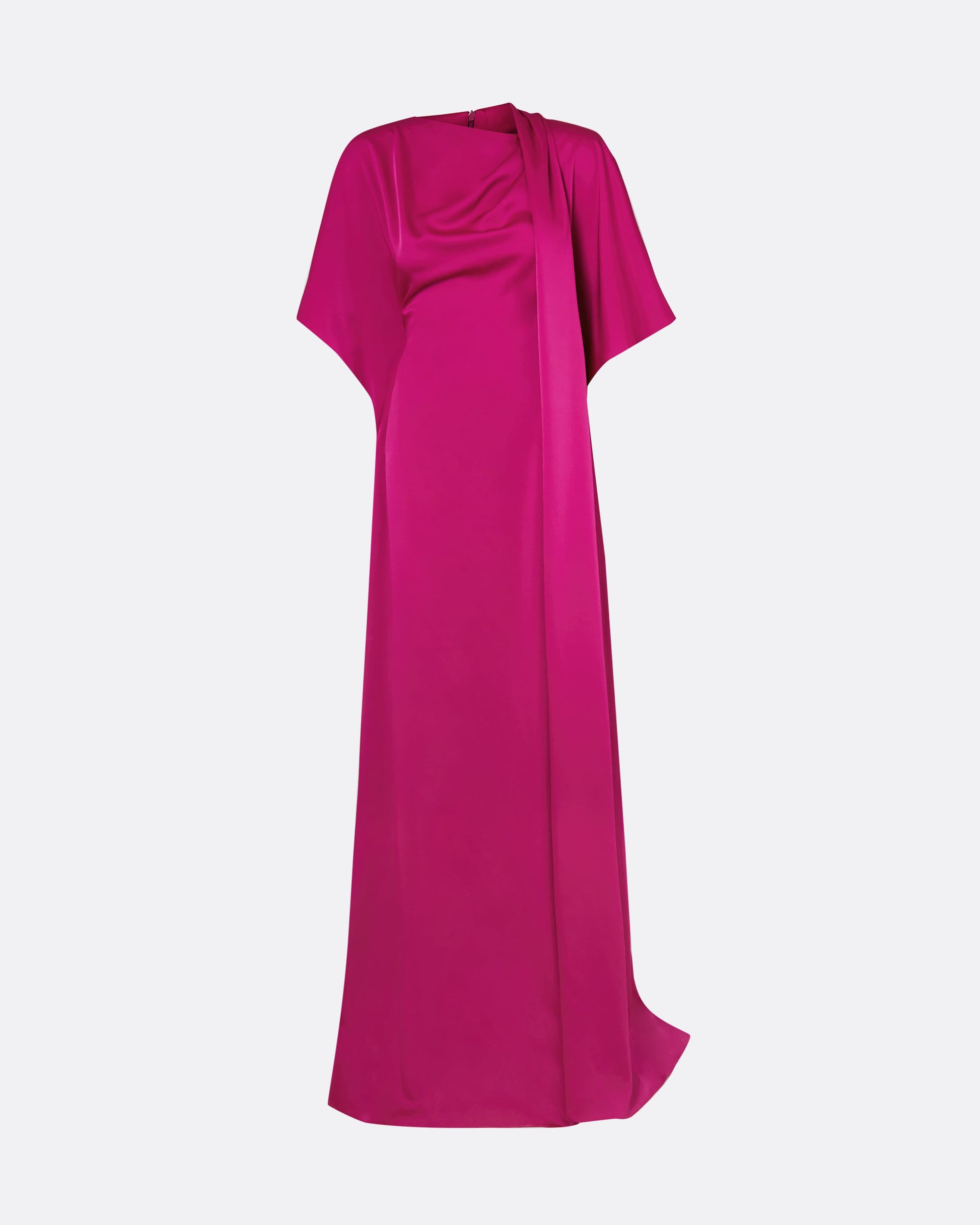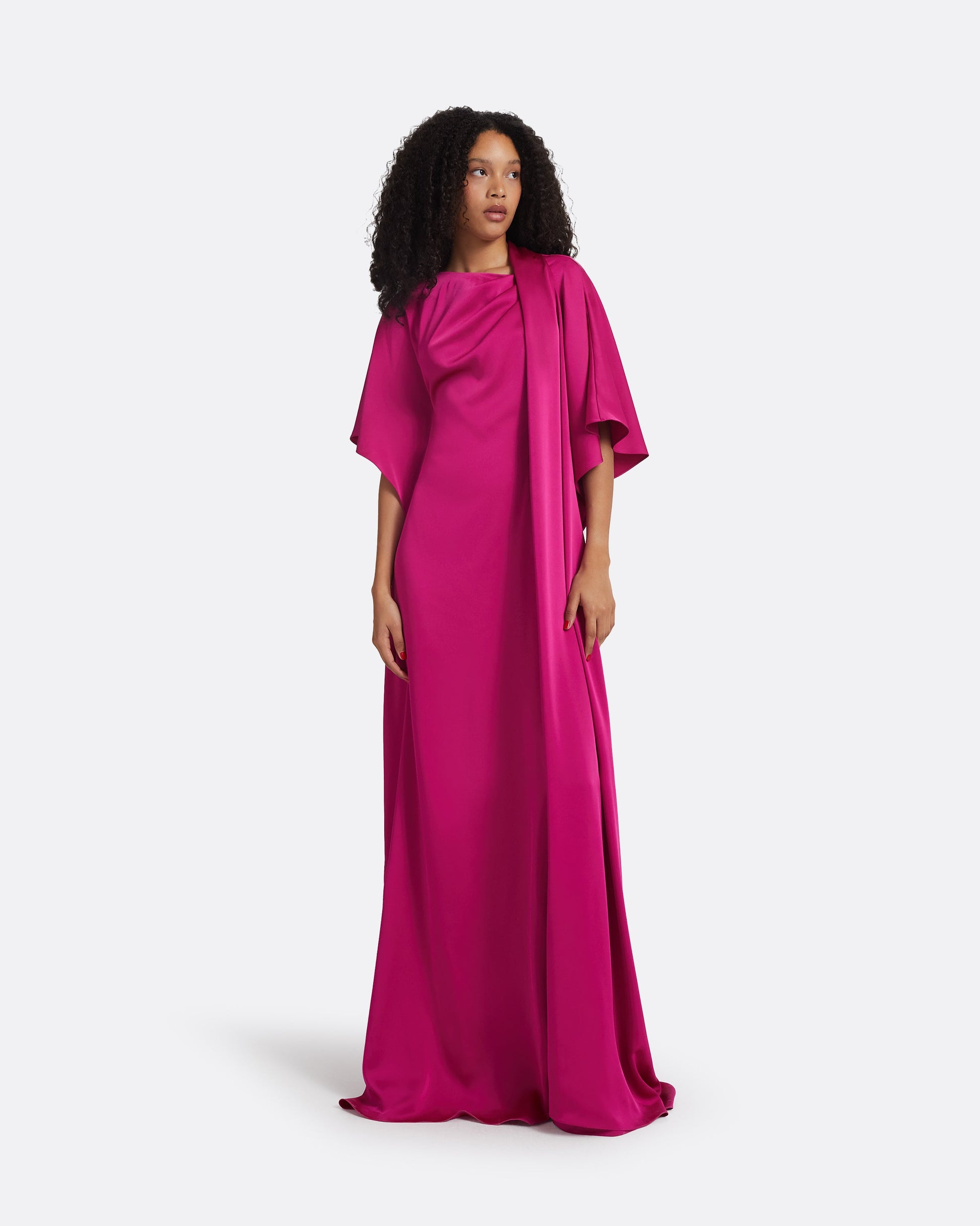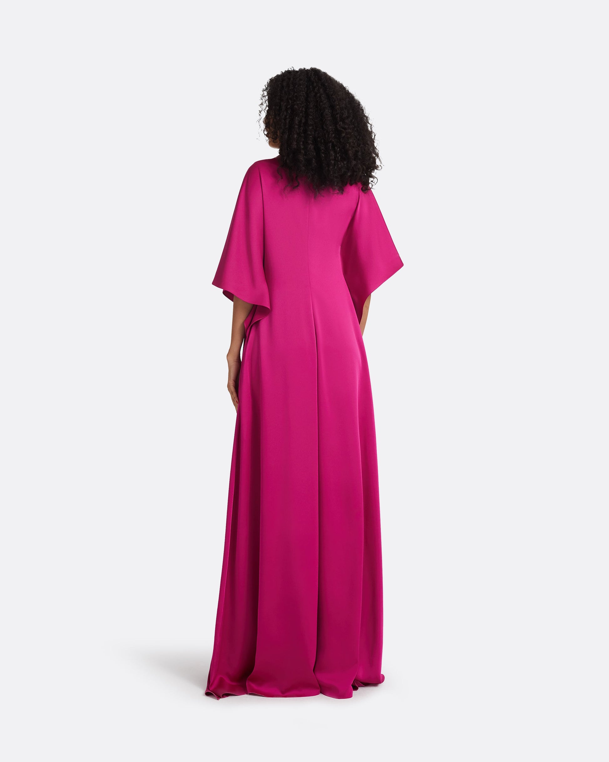 Flowing, kaftan style gown with scarf detail in granita Light Satin Back Crepe.