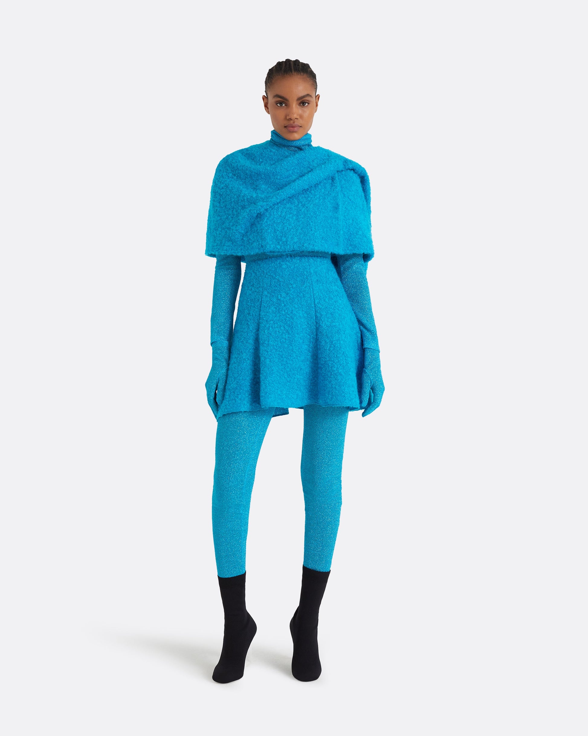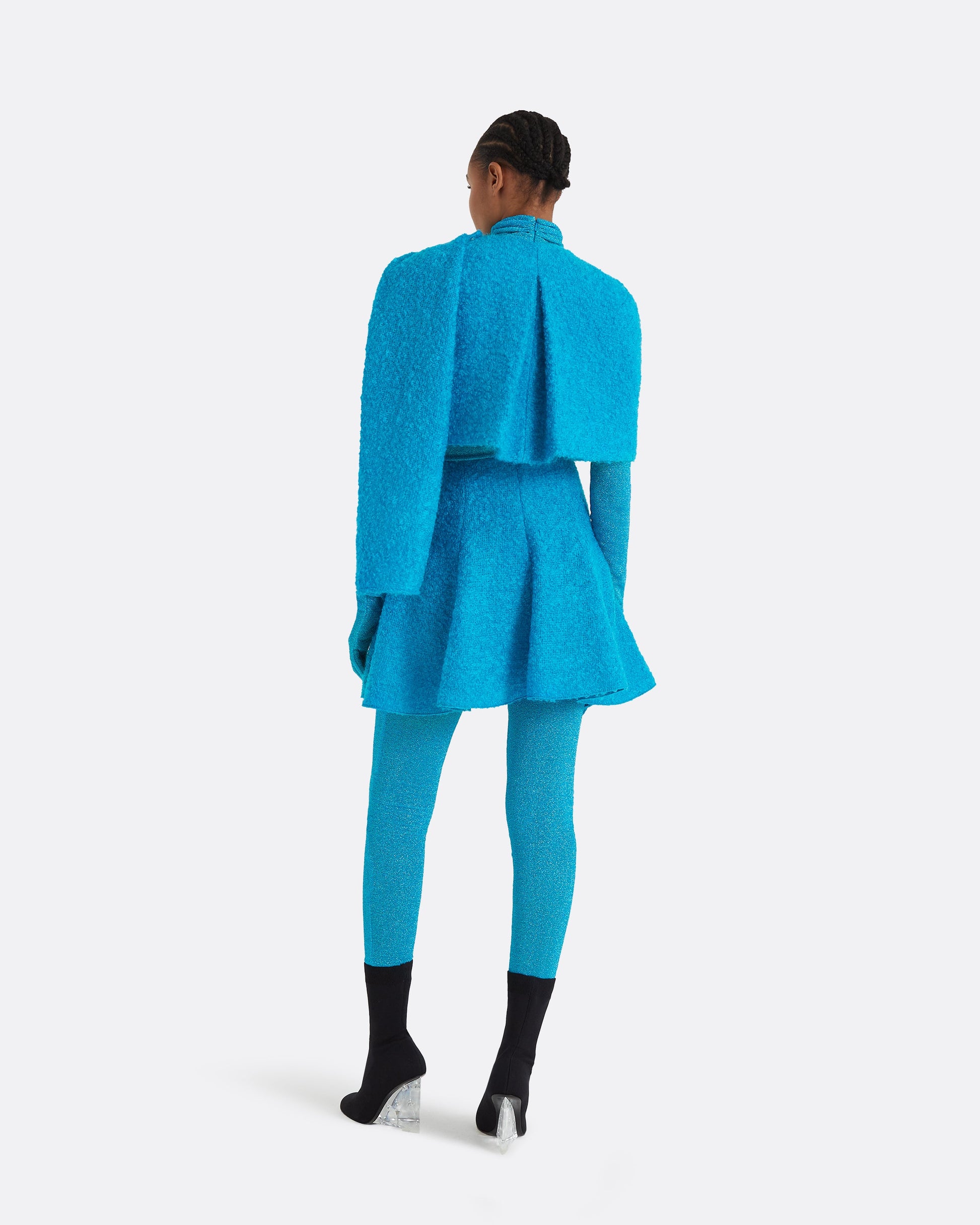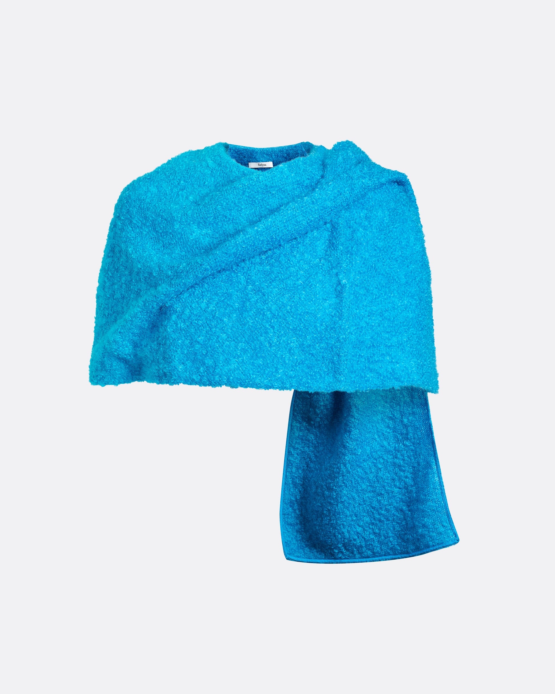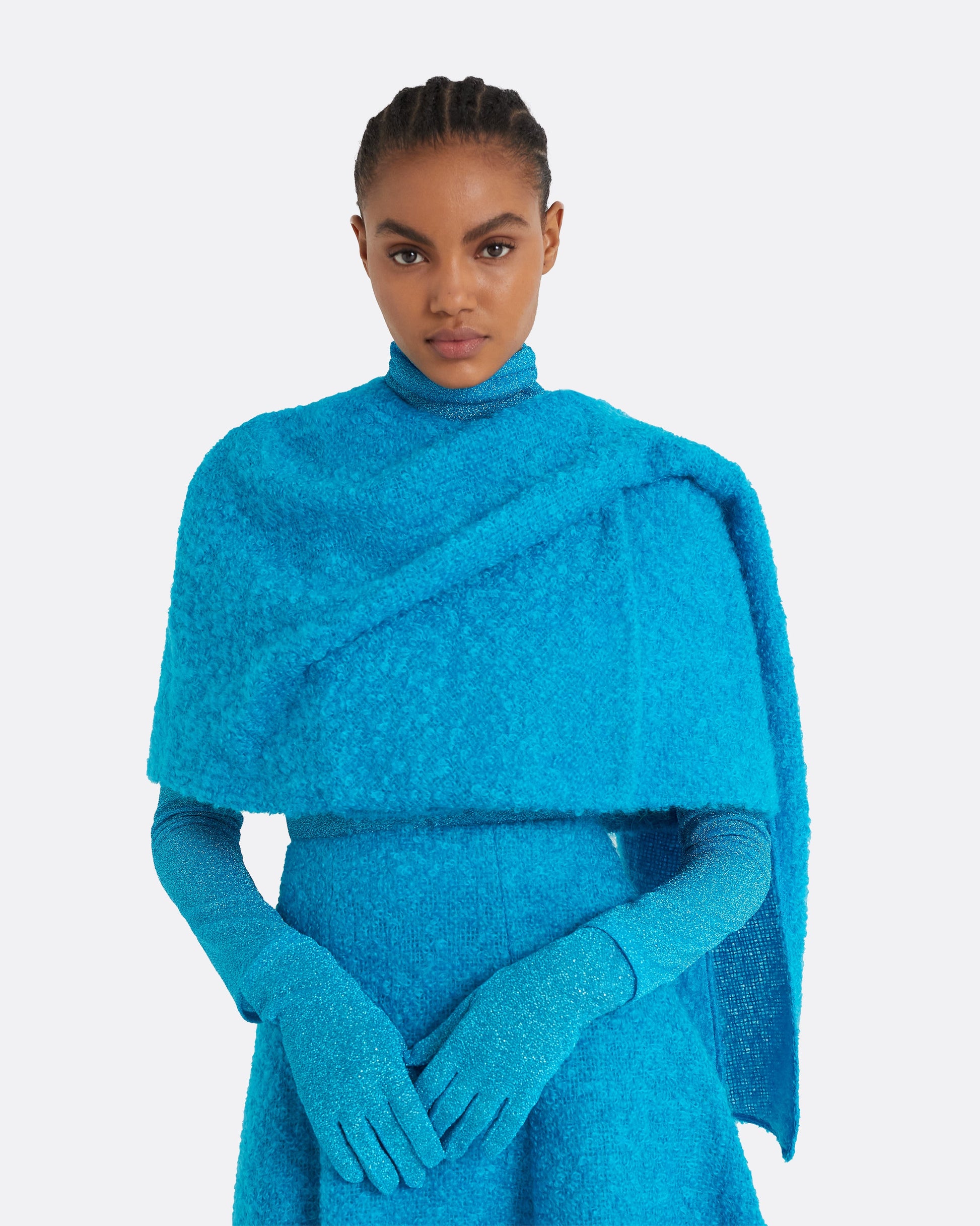 Cropped cape with draped scarf detail in aquamarine Mohair Boucl .
