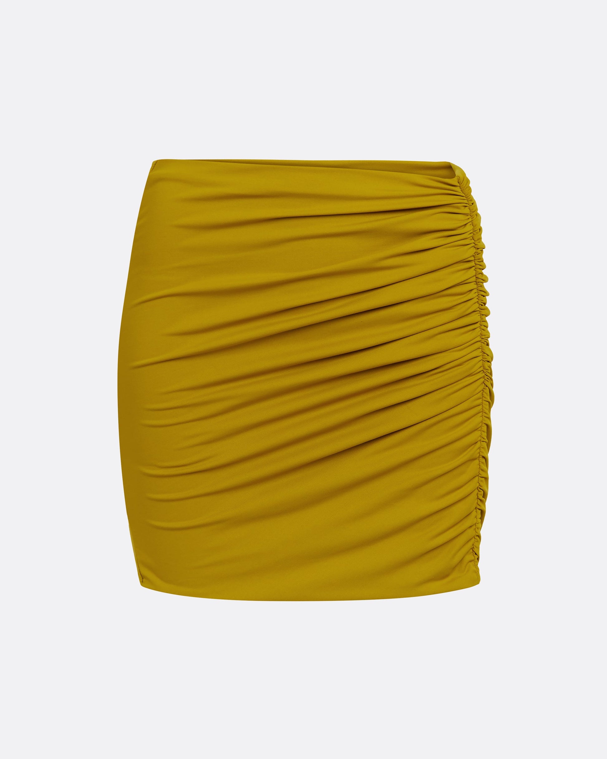 Mini swim skirt with gathering in chartreuse Vertigo Jersey.