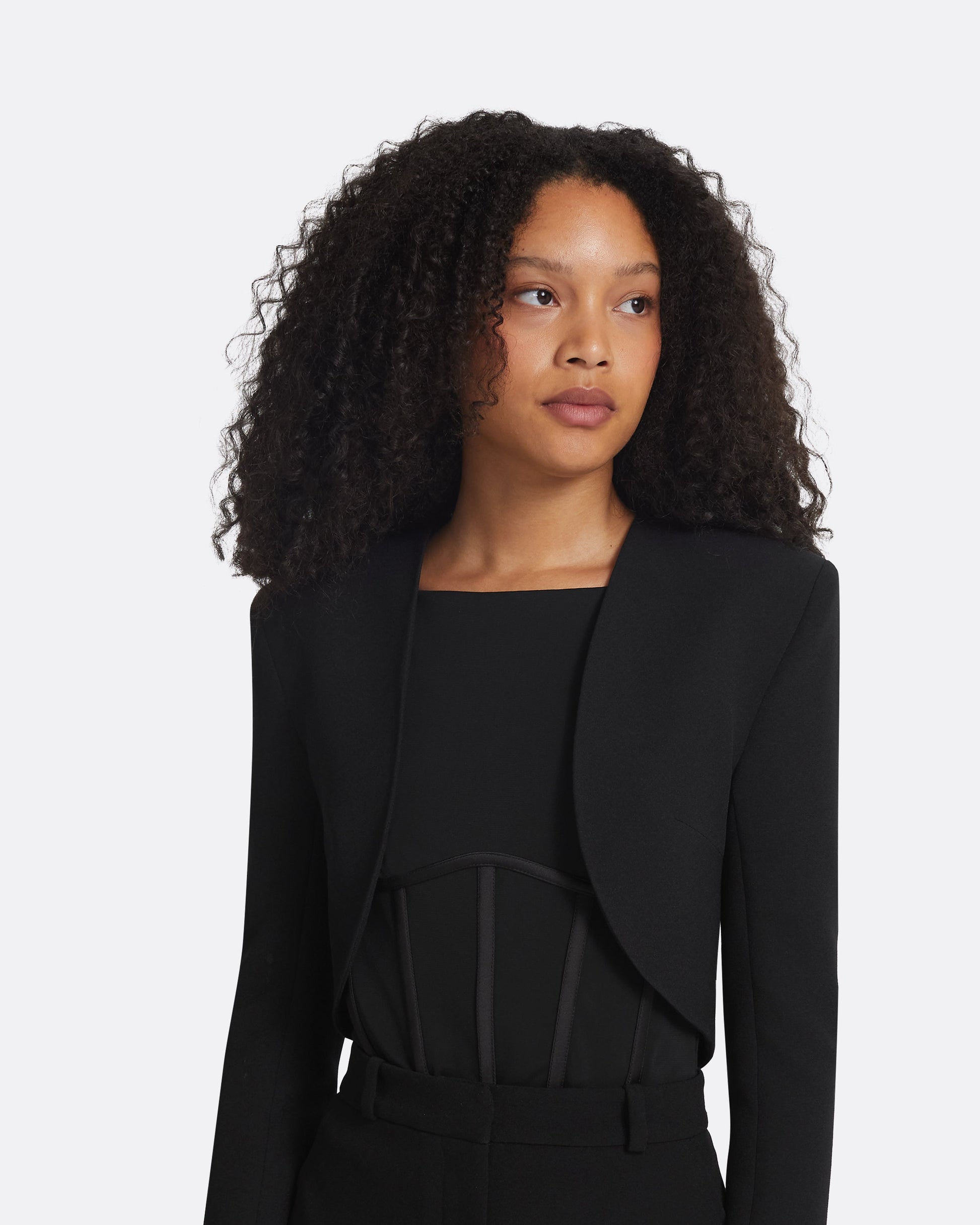 Cropped harness with sculpted neckline in black Heavy Crepe.