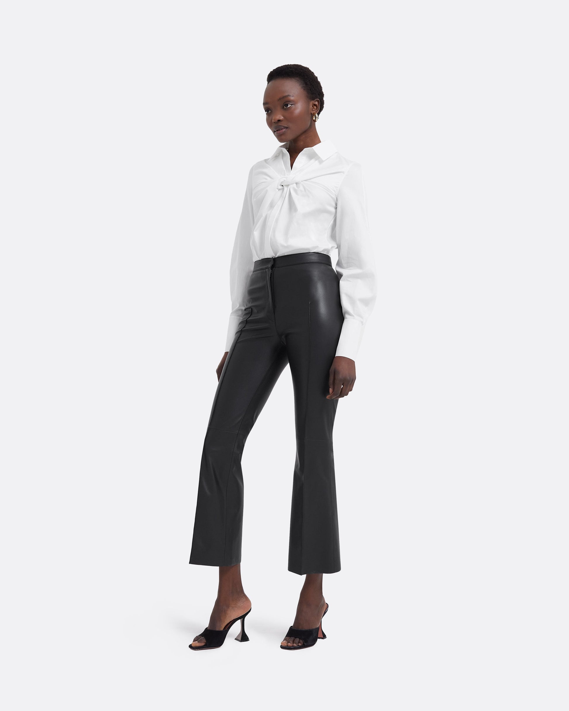 Styled with the Mari trousers in black Vegan Leather.