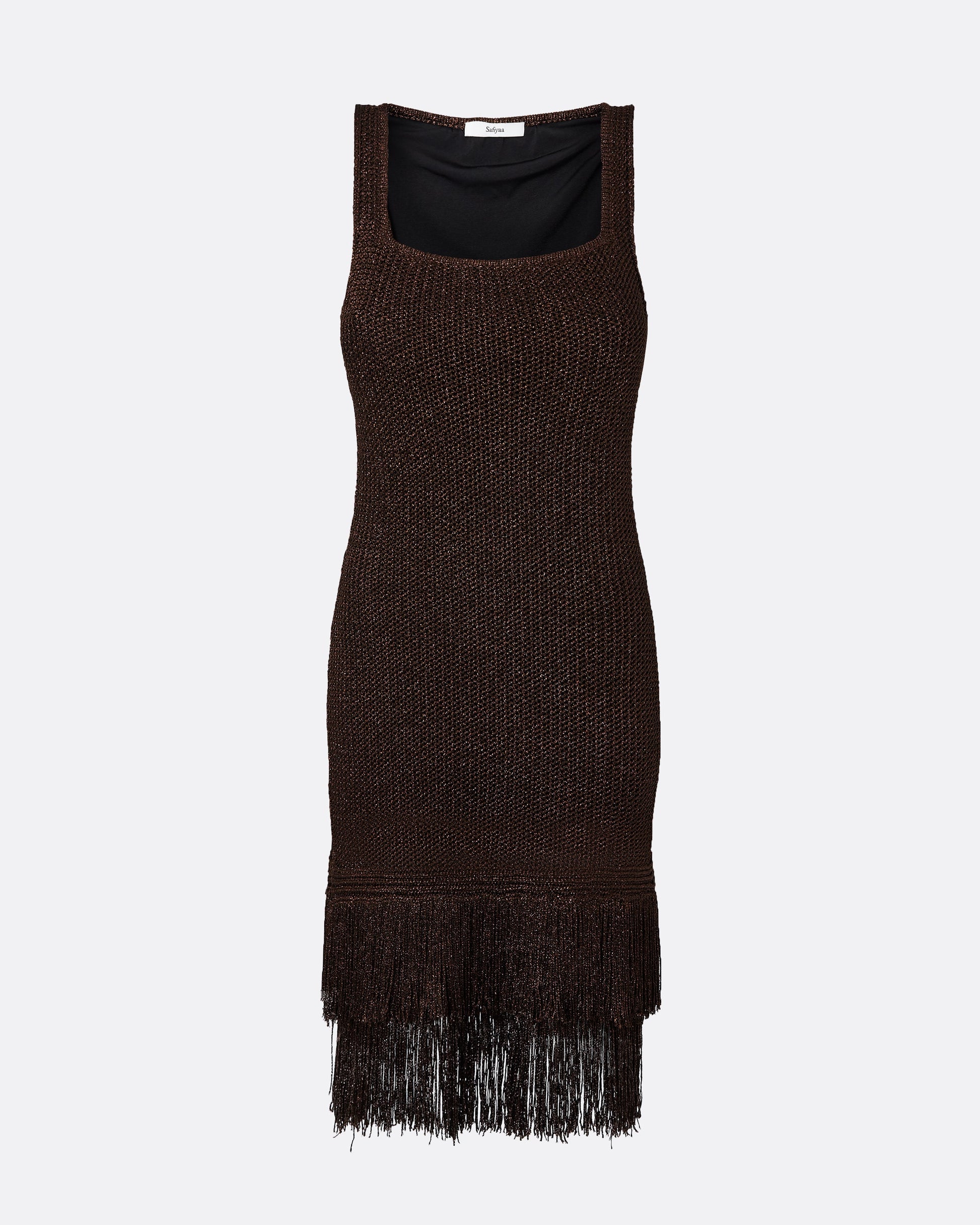 Mini dress with sweetheart neckline in deep brown Miami Knit.