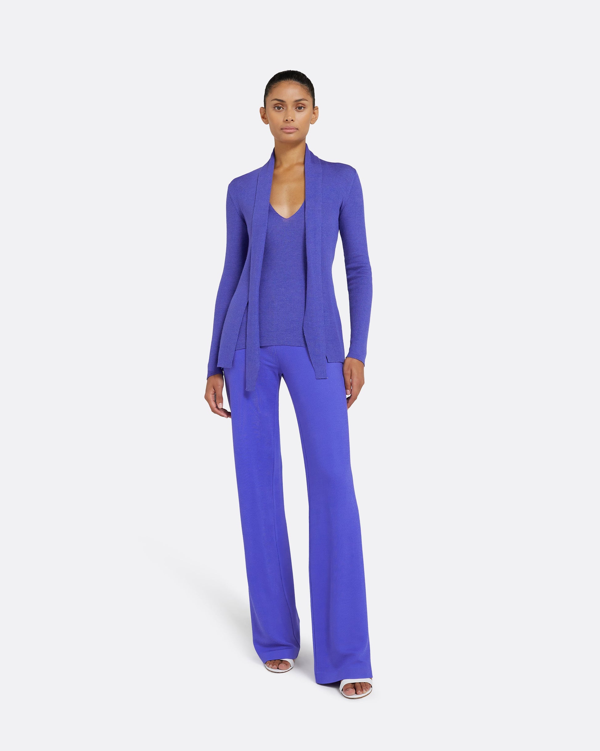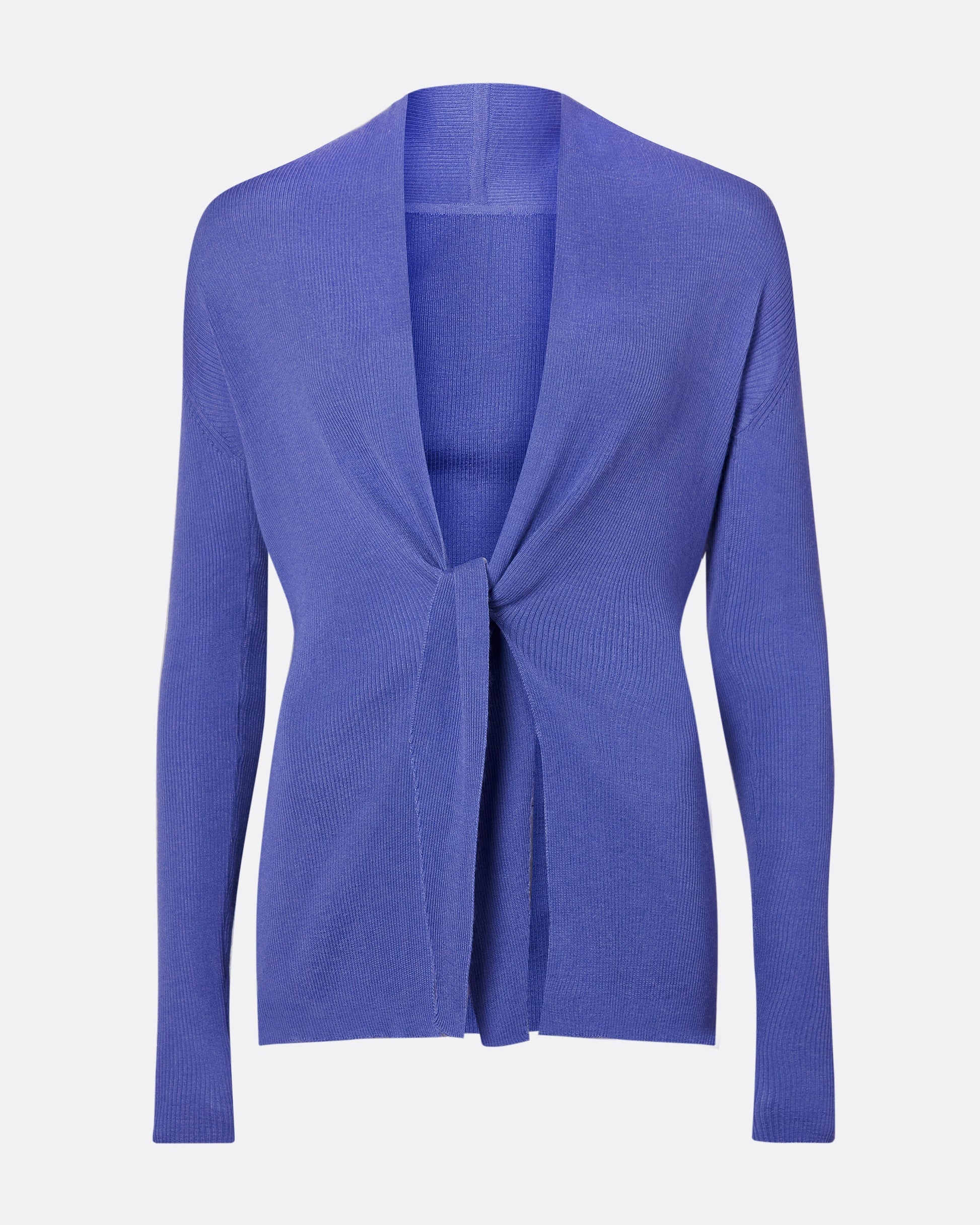 Long sleeve, cardigan with front tie detail in anemone blue.