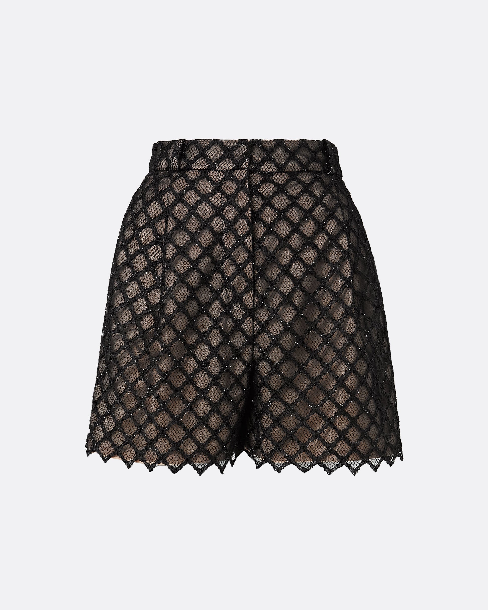 Tailored short with relaxed leg in black Honeycomb Lace.