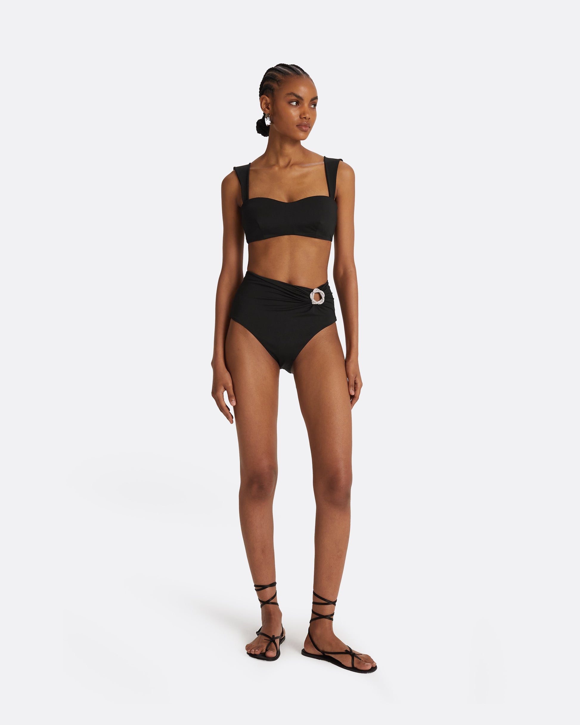 Bikini top with soft sweetheart neckline and wide strap in black Vertigo Jersey.